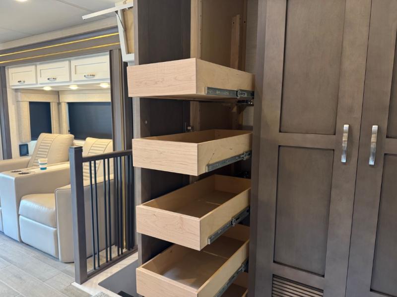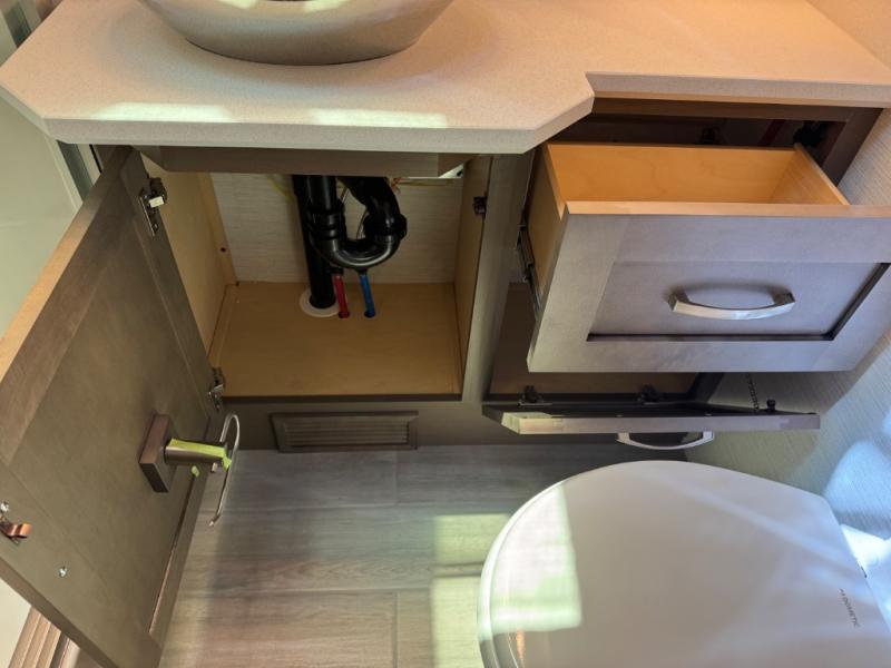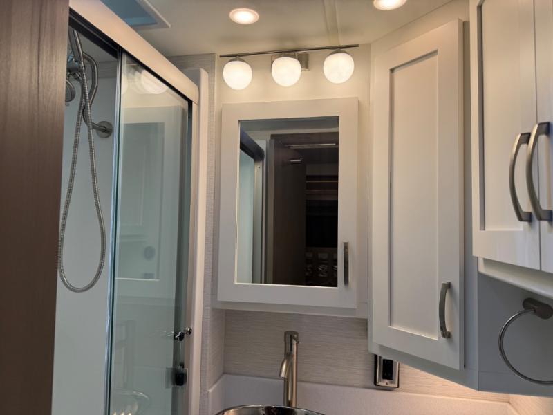 - Spa-Like Bathroom – Featuring a spacious shower, premium fixtures, and ample counter space, the bathroom is designed for maximum comfort and convenience while on the road.