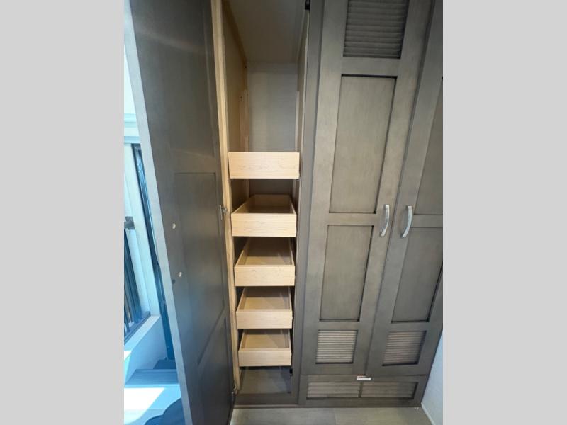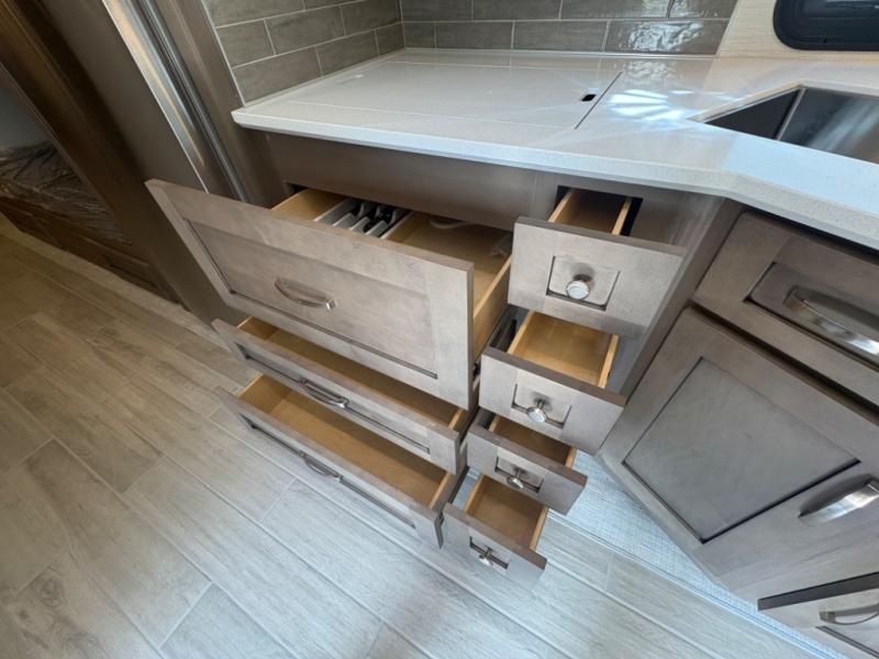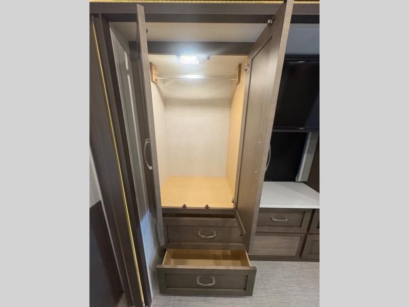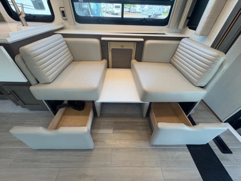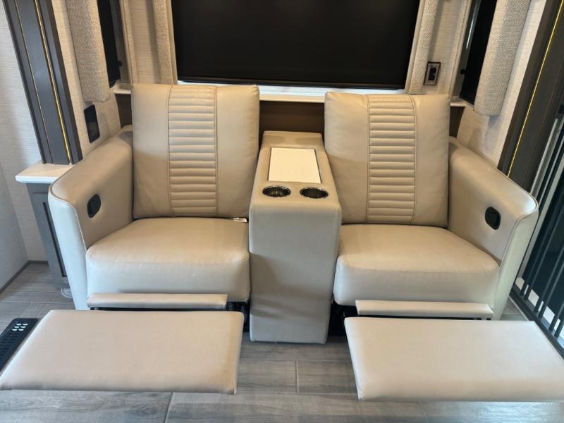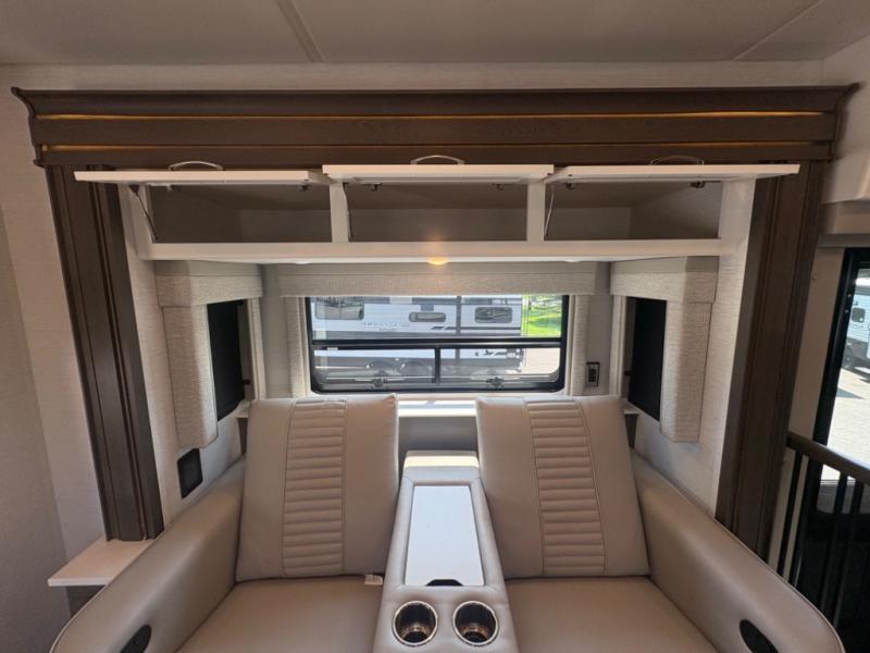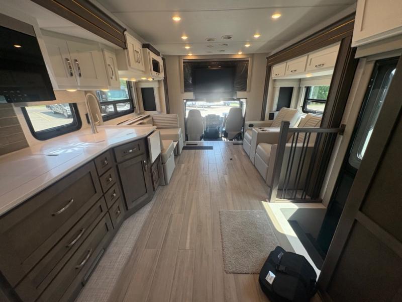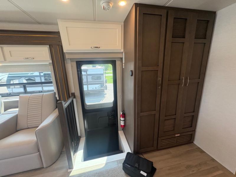 Inside, the Grand Star 3940 exudes elegance and practicality. The spacious living area features high-end furnishings, a large entertainment center, and comfortable seating, creating a welcoming environment for relaxing or entertaining guests. The gourmet kitchen is equipped with modern appliances, ample counter space, and plenty of storage, making meal preparation effortless, whether you’re cooking for two or hosting family and friends.