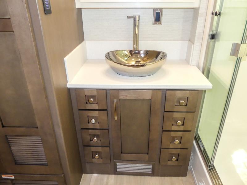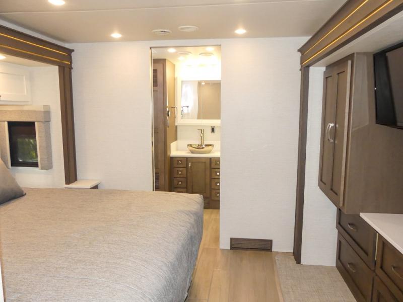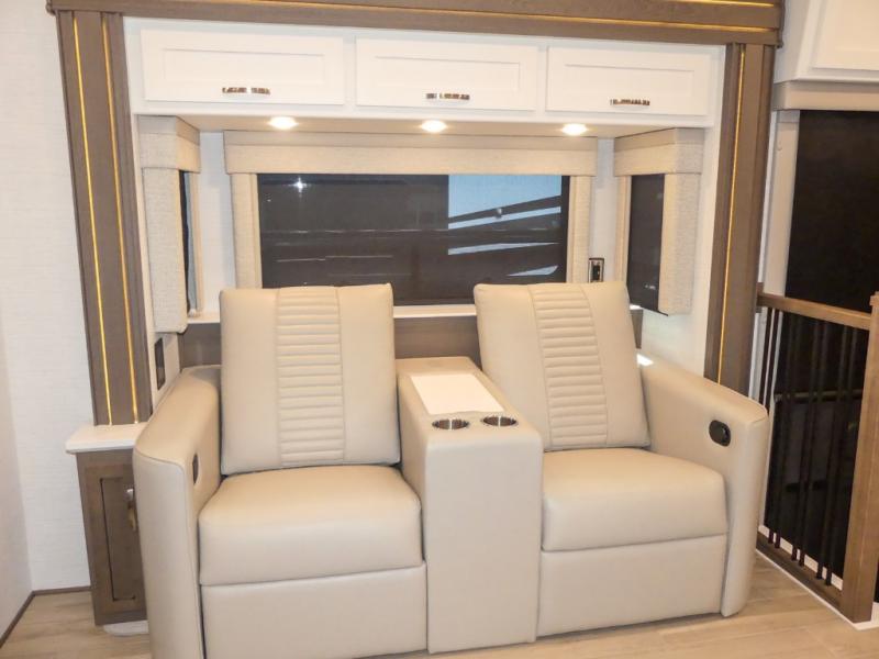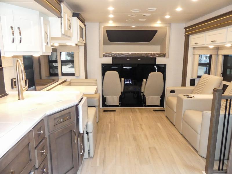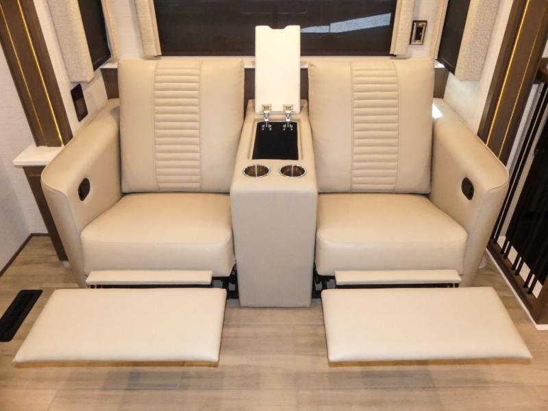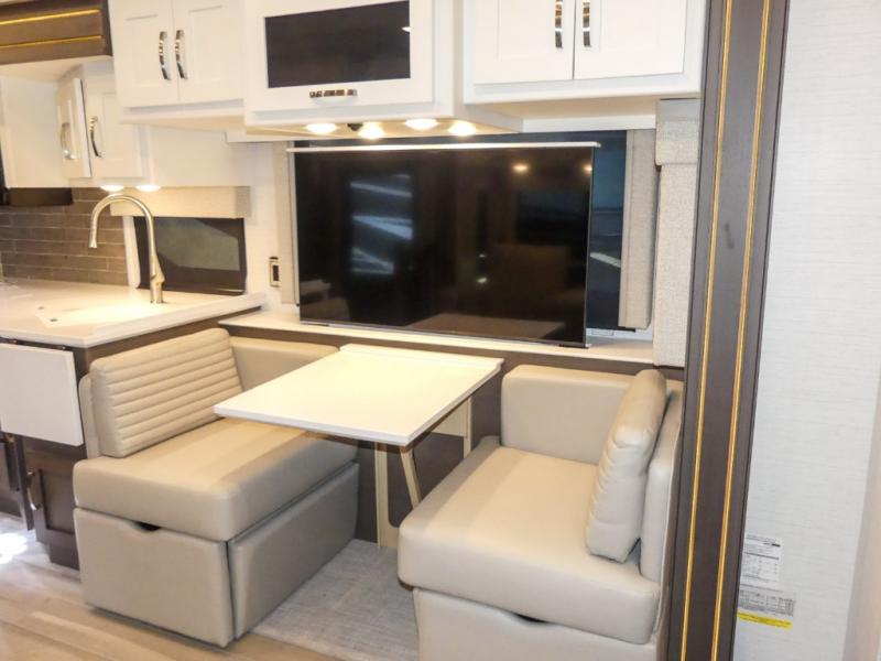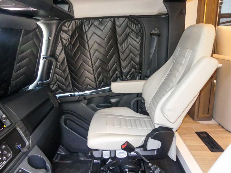 They are easy to maneuver with a Freightliner S2RV chassis, have a large 12,000 lb. towing capacity, and 360 HP to power you to your favorite destinations. An 8kw generator and lithium batteries power these units. Enjoy at-home comforts like a king bed, an exterior entertainment center with sound bar, and a Truma Comfort Plus continuous-flow water heater. There is also a Carefree Travel-R power side awning with lighting to light up the good times day or night. Come find your favorite model today!