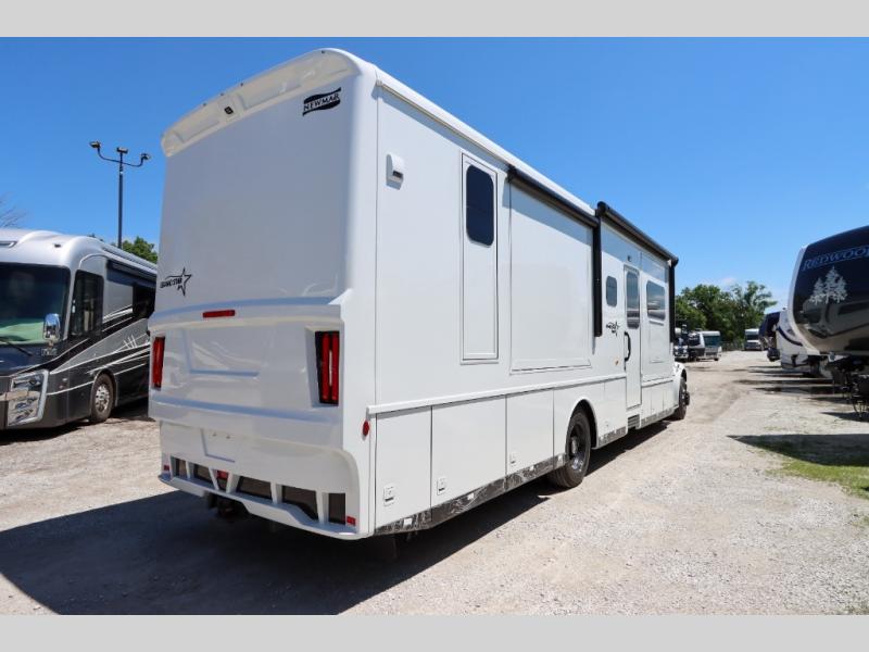 You can see the difference on these Newmar Grand Star Super C diesel motorhomes! Starting with the three striking color options in a full-paint Masterpiece Finish and three stylish interior decor options with elegant cabinet finishes. They are easy to maneuver with a Freightliner S2RV chassis, have a large 12,000 lb. towing capacity, and 360 HP to power you to your favorite destinations. An 8kw generator and lithium batteries power these units. Enjoy at-home comforts like a king bed, an exterior entertainment center with sound bar, and a Truma Comfort Plus continuous-flow water heater. There is also a Carefree Travel-R power side awning with lighting to light up the good times day or night. Come find your favorite model today!