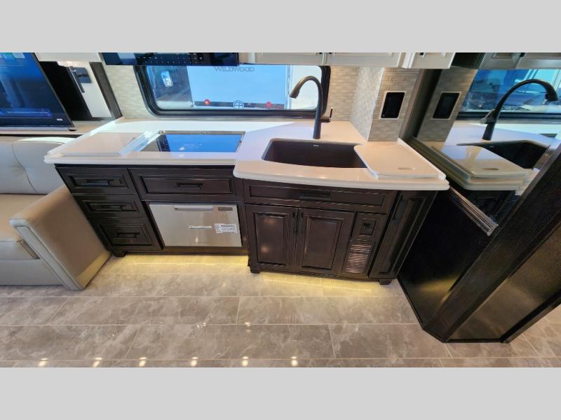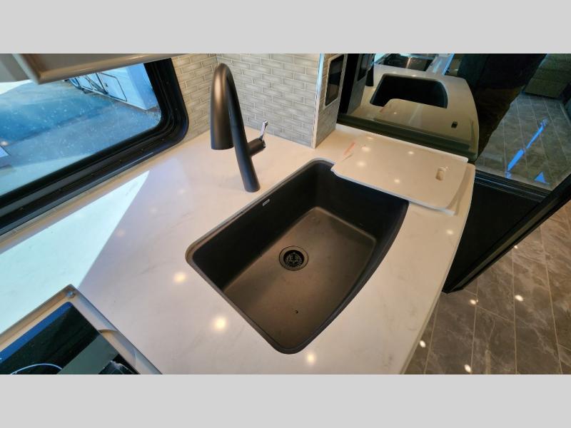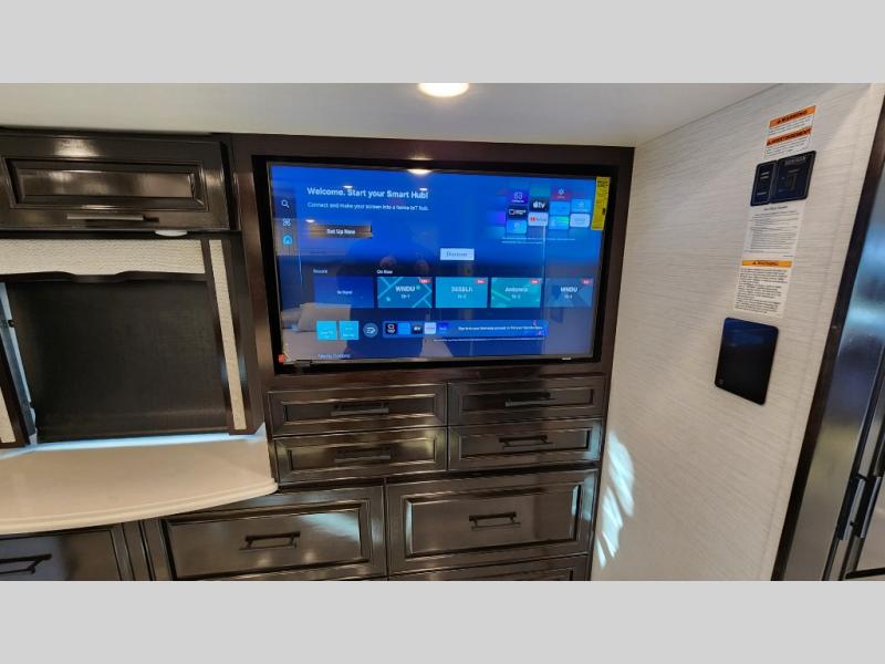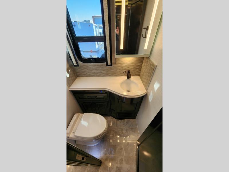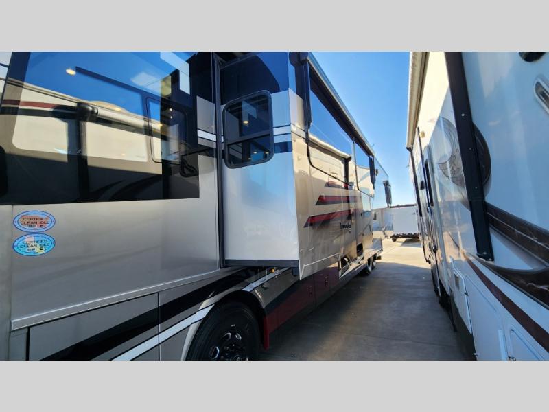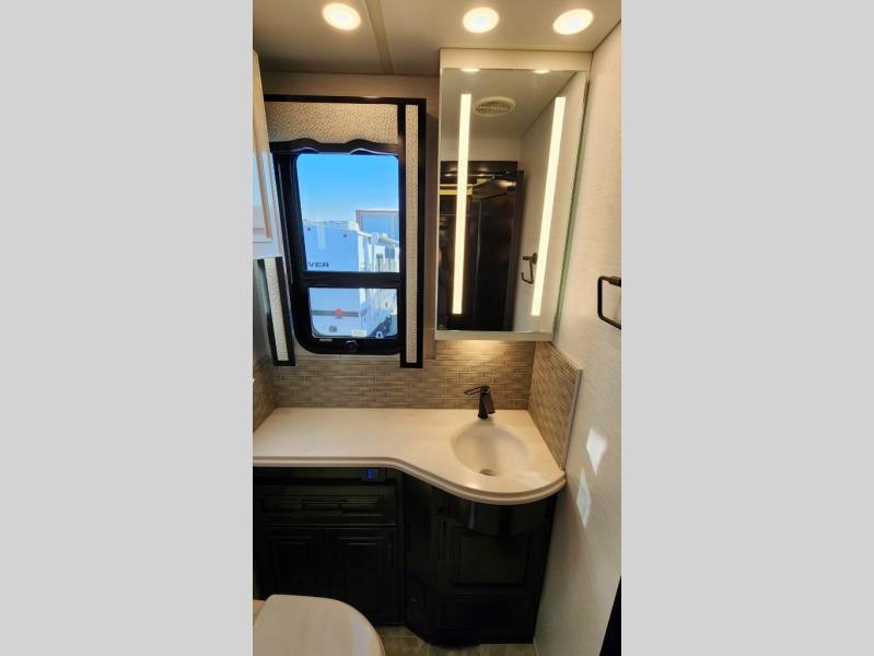Head out on an adventure to see the Grand Canyon, the Pacific ocean, or the Rocky Mountains in this luxurious motorhome. You will appreciate a spacious full rear bath with a shower with a seat, a wardrobe with sliding doors, plus two bath sinks for convenience! The half bath will be perfect if you are traveling with friends, and there is a master bedroom with plenty of storage space for your belongings. The chef of your group will be able to prepare meals each day on the three burner cooktop or in the stainless steel 30" convection microwave, and there is a hide-a-leaf dinette where you can enjoy your meal together and play a game of cards after it's all clean up!