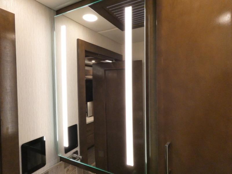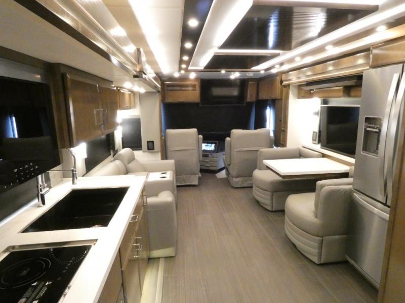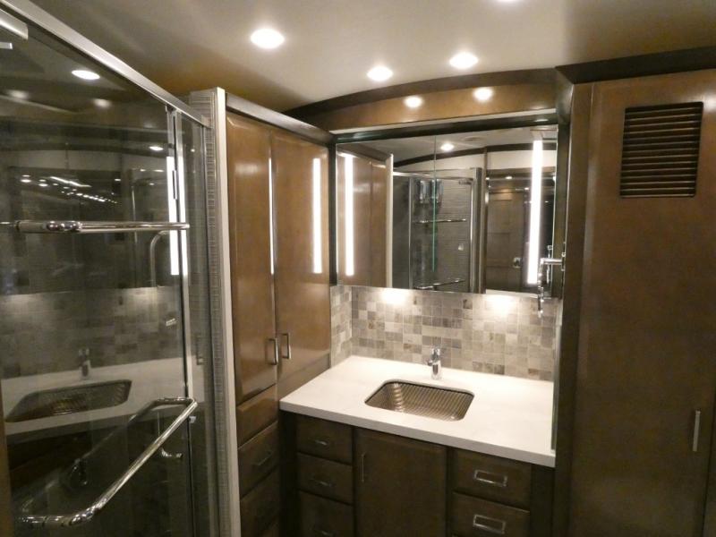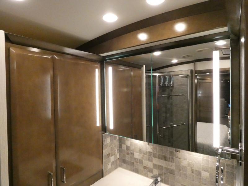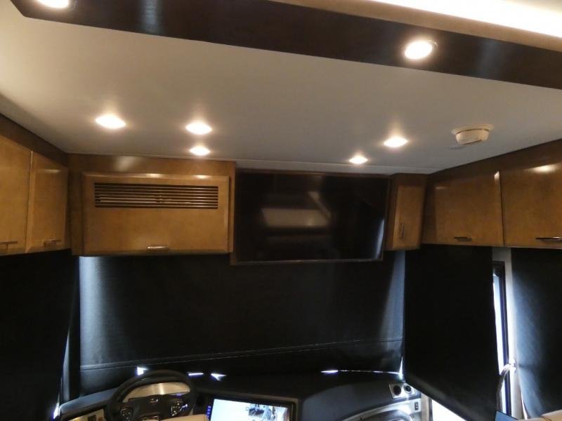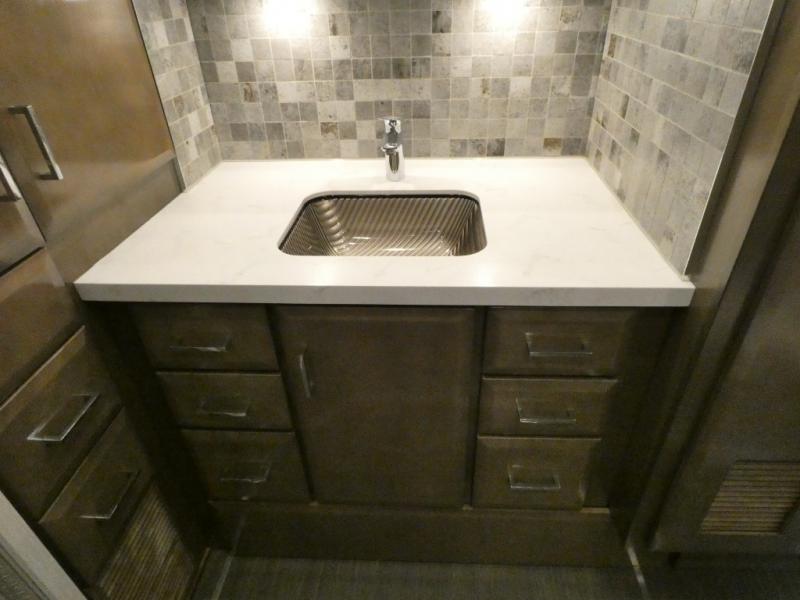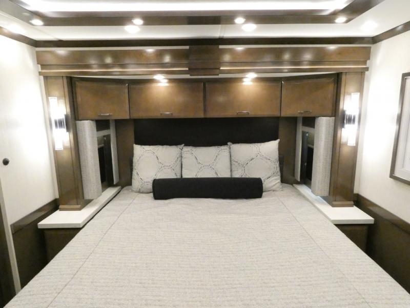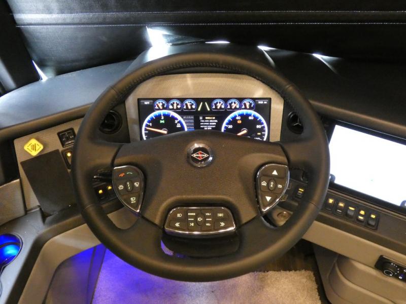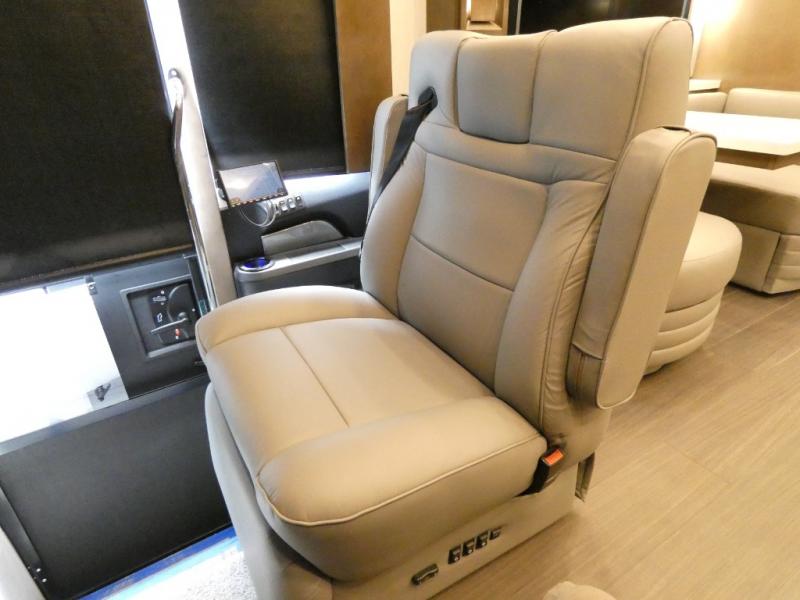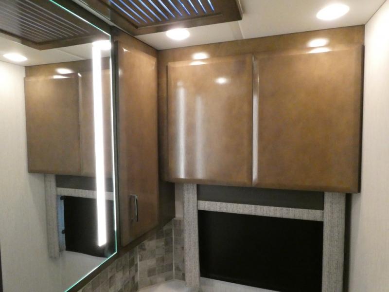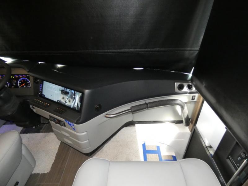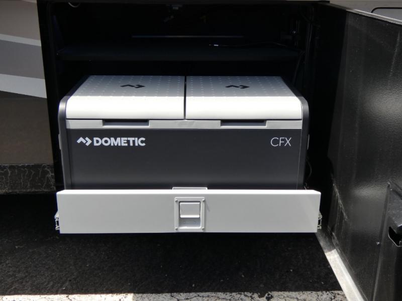 This motorhome has everything you need for a comfortable road trip! The master suite has a king bed slide for a good night's rest across from a dresser with a Samsung LED TV and shirt wardrobes on either side. Attached to the bedroom is your very own full rear bathroom which has a 42" x 35" angled shower next to a wardrobe with drawers and a Splendide washer and dryer next to the vanity sink. The chef will have everything they need to prepare delicious home cooked meals including a stainless steel 30" convection microwave with air fryer feature and a Whirlpool 19.7 cu. ft. refrigerator to keep the perishables fresh, plus the half bathroom is by the kitchen for quick bathroom breaks while cooking. Enjoy your meals at the Euro booth dinette (non-sleeper) and relax on the 74" hide-a-bed sofa while watching your favorite movies on the Samsung LED TV on power lift!