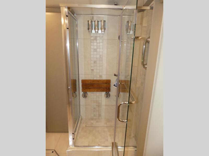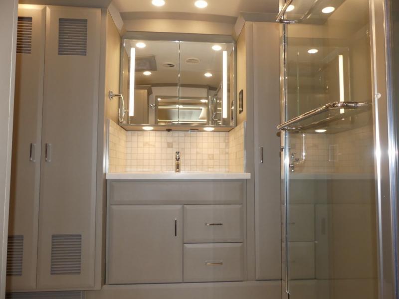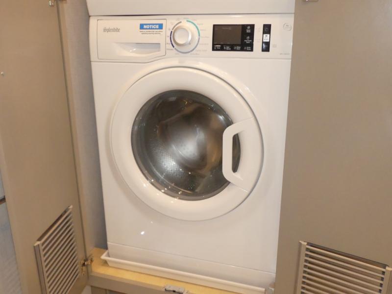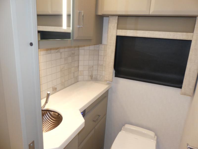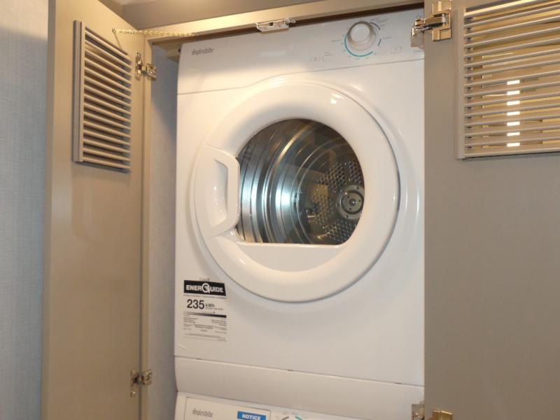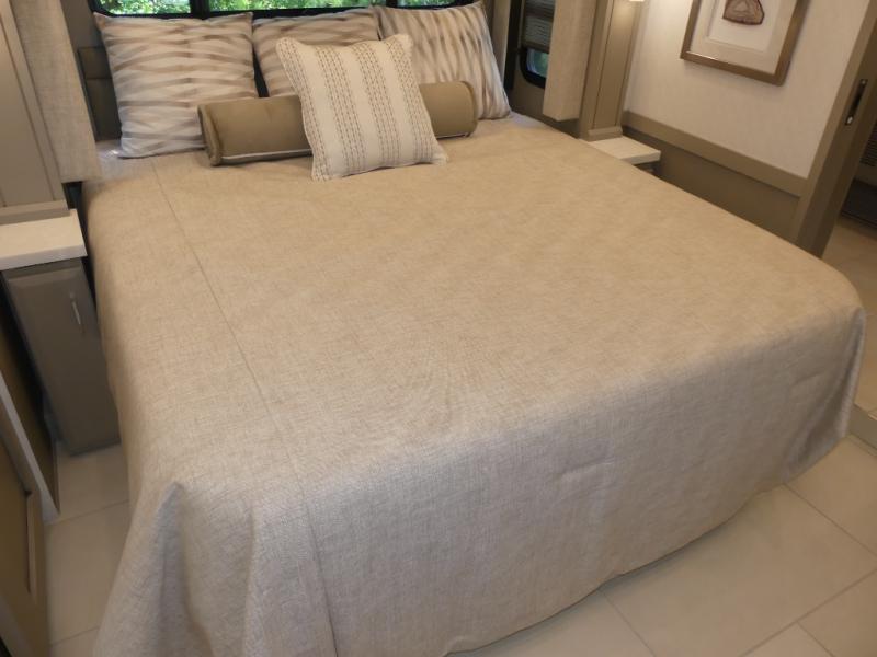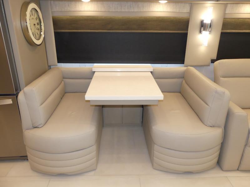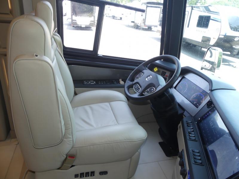 Don't pass up your opportunity to travel in pure luxury with this motorhome! The master suite has a king bed slide for a good night's rest across from a dresser with a Samsung LED TV and shirt wardrobes on either side. Attached to the bedroom is your very own full rear bathroom which has a 40" x 32" shower with a seat next to a linen closet and wardrobe, as well as a Splendide two-piece washer and dryer next to the vanity sink. The chef will have everything they need to prepare delicious home cooked meals including a cabinet pull-out, a stainless steel 30" convection microwave with air fryer feature and a Whirlpool 19.7 cu. ft. refrigerator to keep the perishables fresh, plus the half bathroom is by the kitchen for quick bathroom breaks while cooking. Enjoy your meals at the dinette and relax on either the theater seats or the 62" jackknife sofa while watching your favorite movies on the Samsung LED TV on power lift!