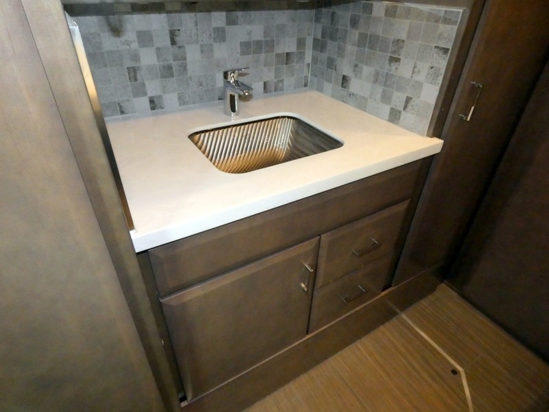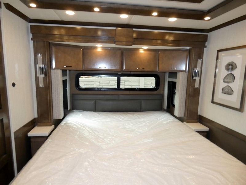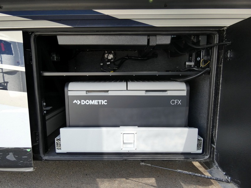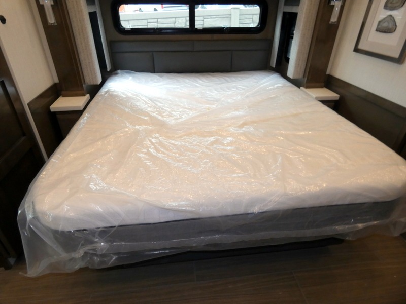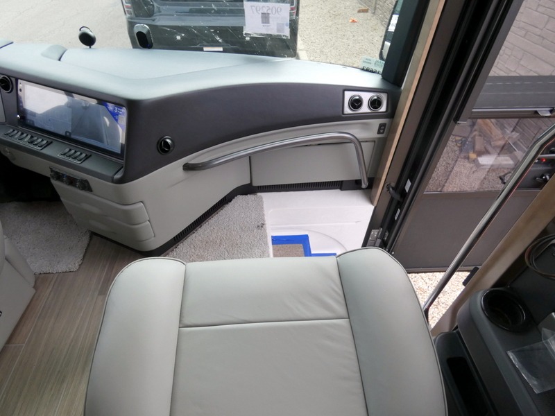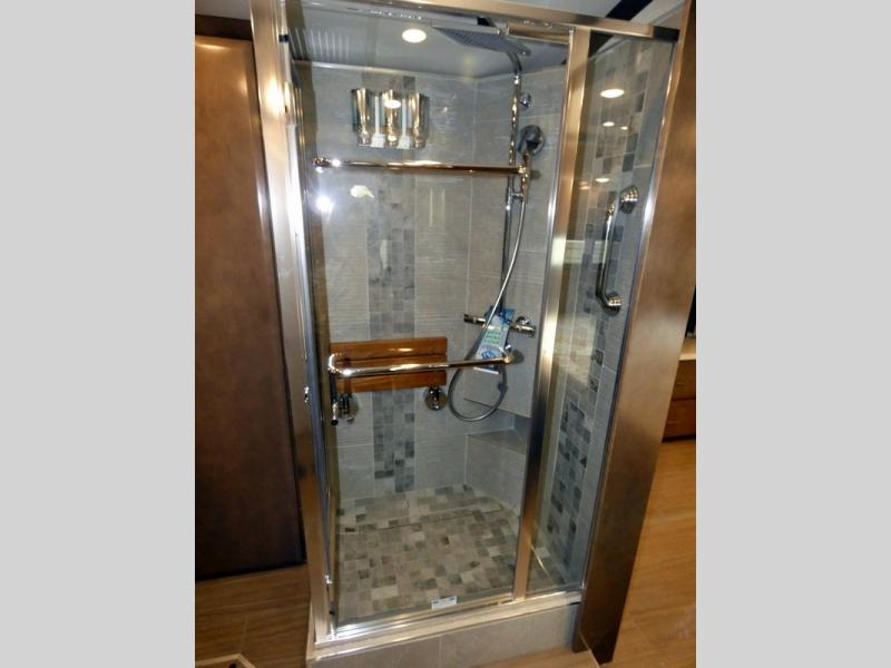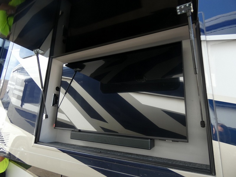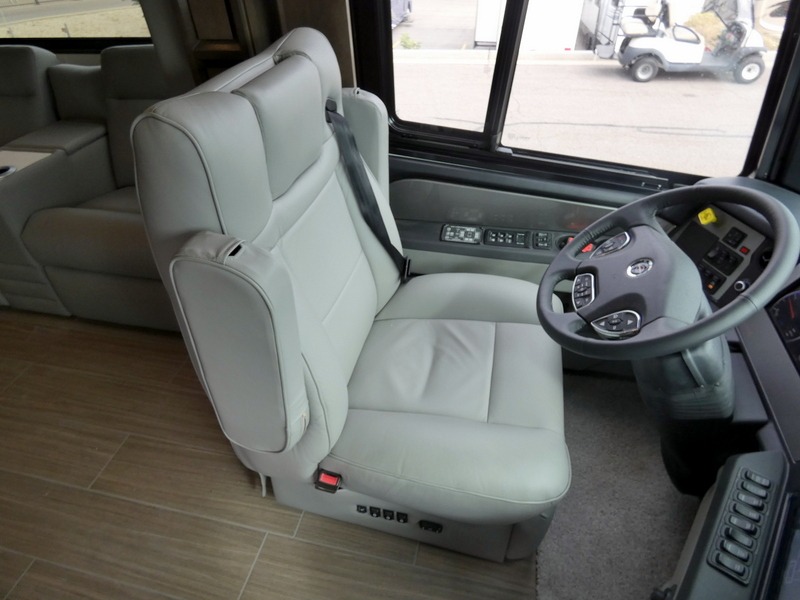 Don't pass up your opportunity to travel in pure luxury with this motorhome! The master suite has a king bed slide for a good night's rest across from a dresser with a Samsung LED TV and shirt wardrobes on either side. Attached to the bedroom is your very own full rear bathroom which has a 40" x 32" shower with a seat next to a linen closet and wardrobe, as well as a Splendide two-piece washer and dryer next to the vanity sink. The chef will have everything they need to prepare delicious home cooked meals including a cabinet pull-out, a stainless steel 30" convection microwave with air fryer feature and a Whirlpool 19.7 cu. ft. refrigerator to keep the perishables fresh, plus the half bathroom is by the kitchen for quick bathroom breaks while cooking. Enjoy your meals at the hide-a-leaf dinette and relax on either the 84" hide-a-bed sofa or the 62" jackknife sofa while watching your favorite movies on the Samsung LED TV on power lift!