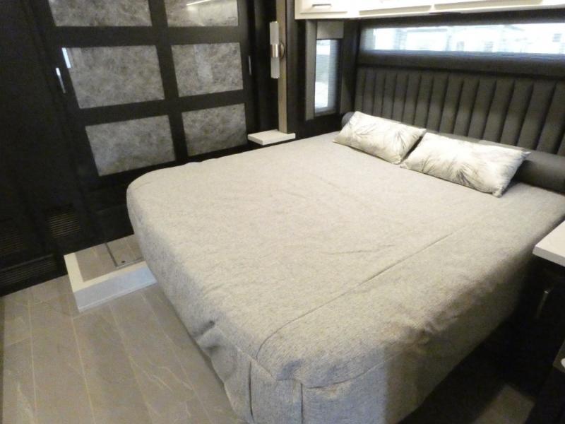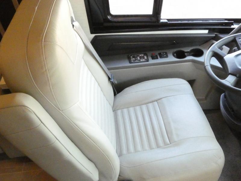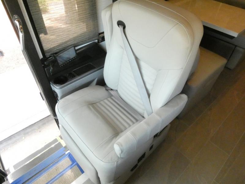 With any Newmar New Aire Class A diesel motorhome, you can enjoy luxury, functionality, style, and modern amenities wrapped up in a small package! And these coaches stand out on the road with the front and rear end caps, the lighted Newmar badge on the front grill, and the Full-Paint Masterpiece Finish with Clearcoat. More standout features include the back-up alarm, recessed fuel fills with crossover to fill from either side, the tire pressure display on the dash, and Mobile Eye lane tracking. Inside, you'll love the super polished solid surface countertops, Ultraleather sofas and front seats, plus tile floor in the kitchen, bathroom and living areas!