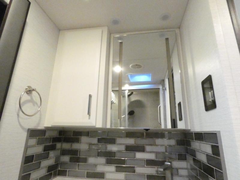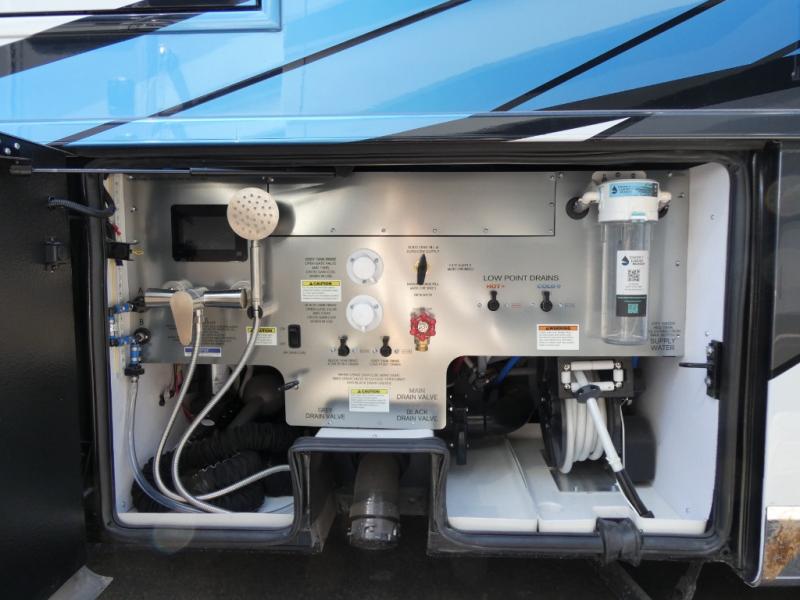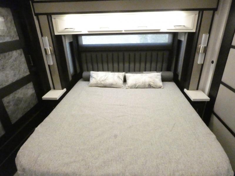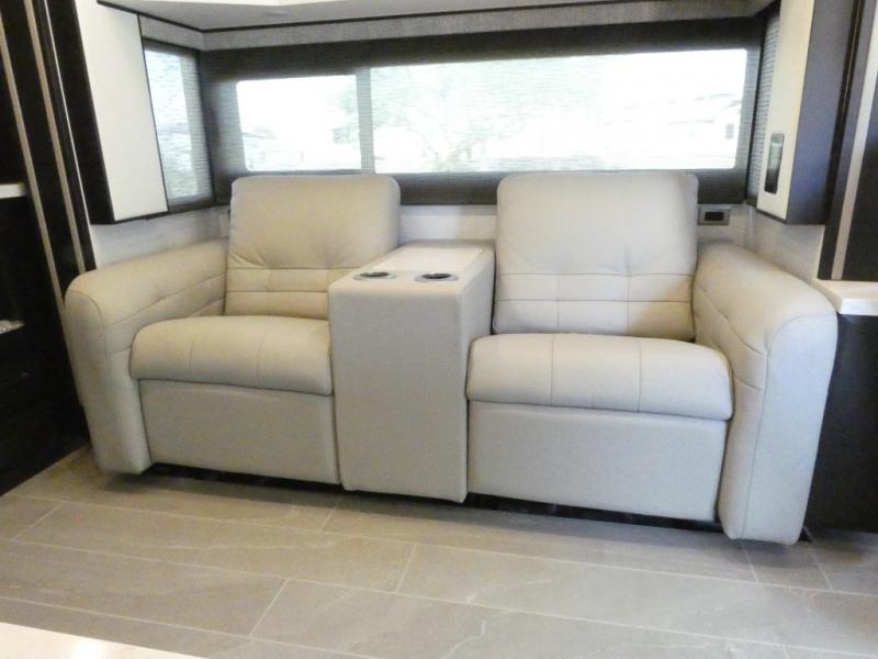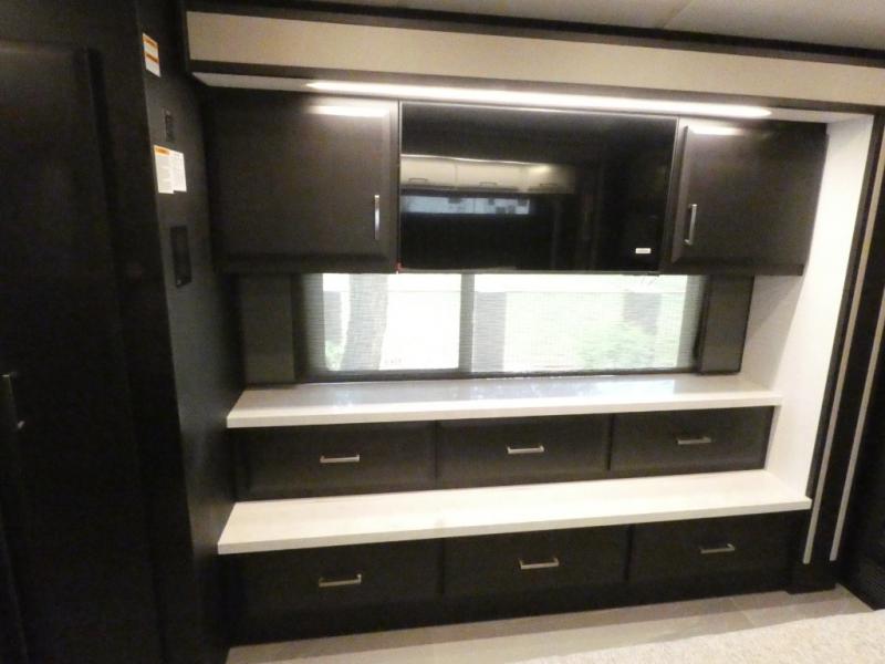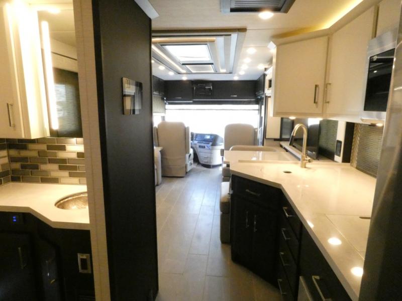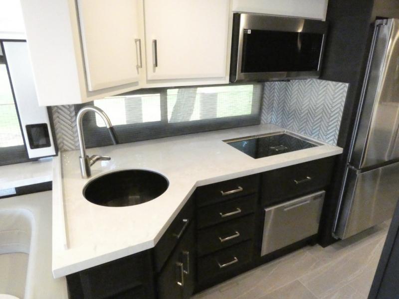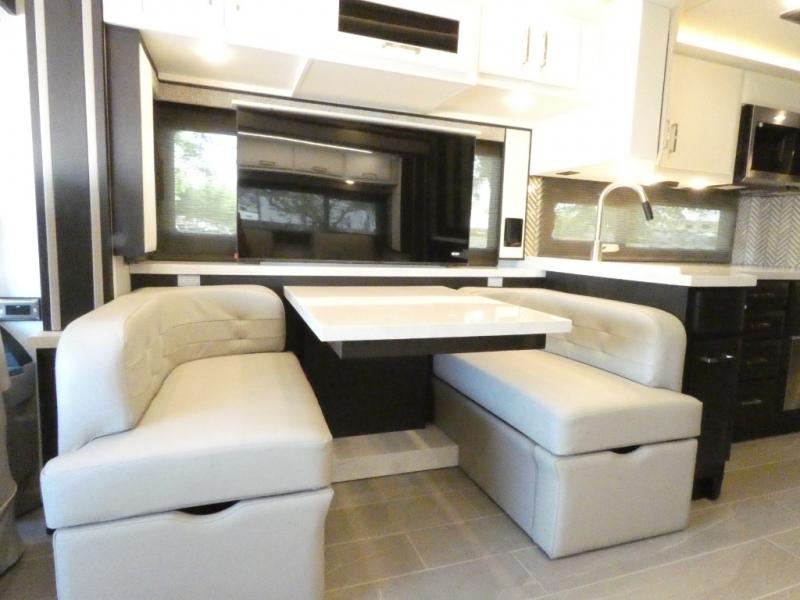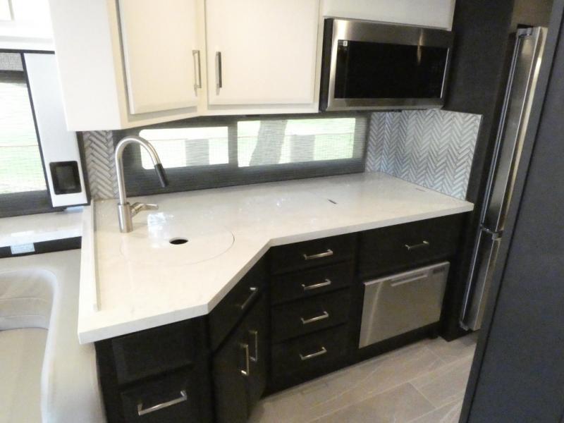 Looking to relax in the great outdoors, travel to see family cross-country, or shop at your favorite places while staying at an RV resort? You can do all of those activities plus more when you travel in this coach! The full-wall slide gives you plenty of room to walk from the front to the back and the two additional slide outs giving you even more space. The main living area offers a visionary sofa, and a Euro booth dinette with two table leaves and two folding chairs for more seating while dining or watching the 50" TV on power lift. You will also be able to utilize the driver/passenger seats which include six-way power lumbar, recline, and footrest when drinking your glass of wine or cup of coffee. The kitchen offers everything you will need to make any meal, plus the stainless steel appliances are stylish.
