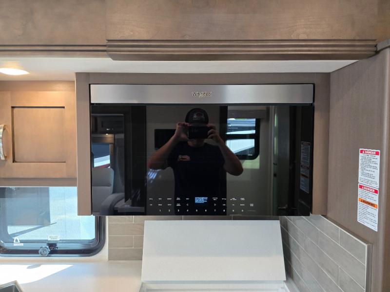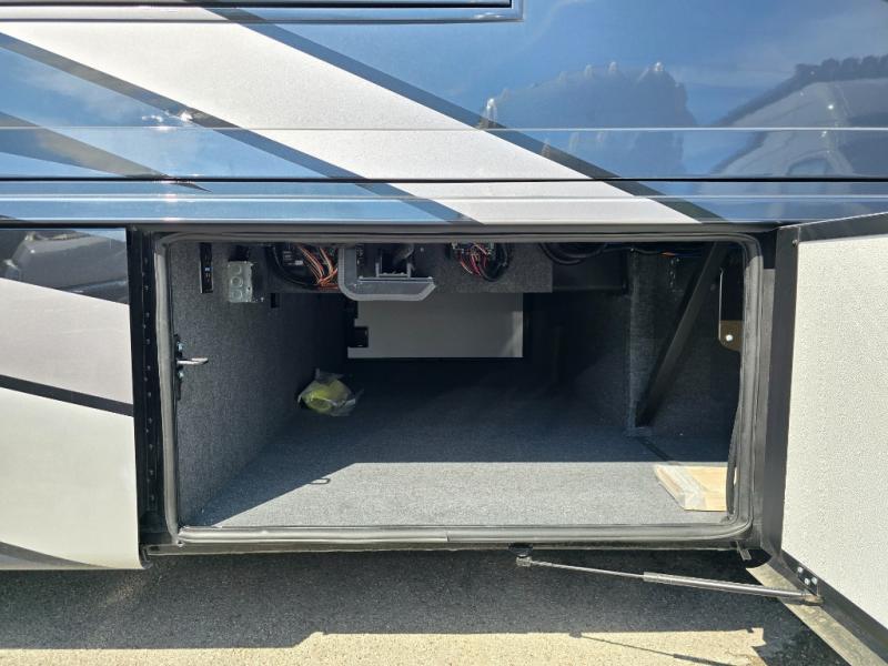 Pack your bags for an extended vacation in this four slide out coach! Once you've parked for the day, you can make lunch in the full kitchen that includes a 30" stainless steel convection microwave with a three burner cooktop and an air fryer feature. There is a 10 cu. ft. Norcold refrigerator and pantry to store your food, plus a booth dinette where you can dine together. A Jackknife sofa provides more seating space, or you may just find yourselves outdoors under the Carefree Travel'r awning. The mid-coach full bath will be easily accessible for everyone to use, and the rear private bedroom provides you with your own space at night. Here, you'll enjoy a queen bed slide out with overhead storage, a dresser with a Samsung LED TV, plus a wardrobe with sliding mirror doors. There is even a second wardrobe with an optional Splendide two-piece stacked washer and dryer if you plan to go full-time!