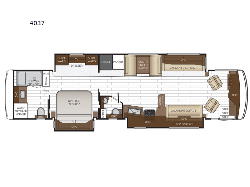 - Tv Samsung 32” LED in Front Overhead – Not Available W/Drop Down Bunk Option (K890)
