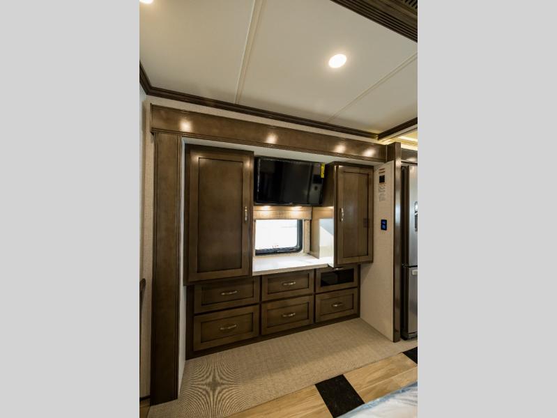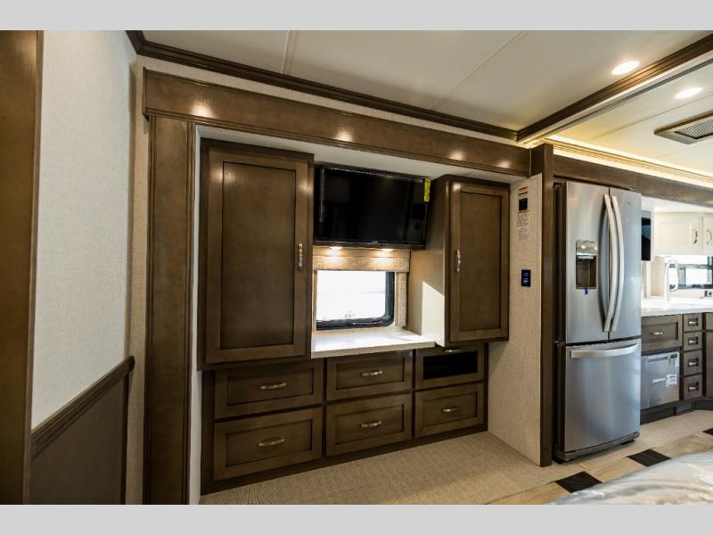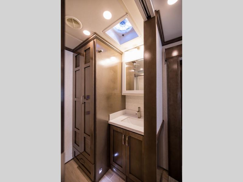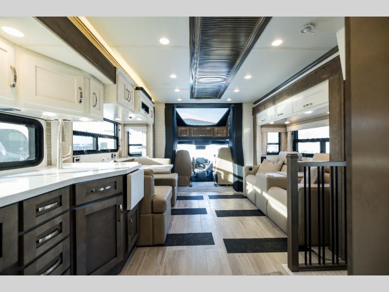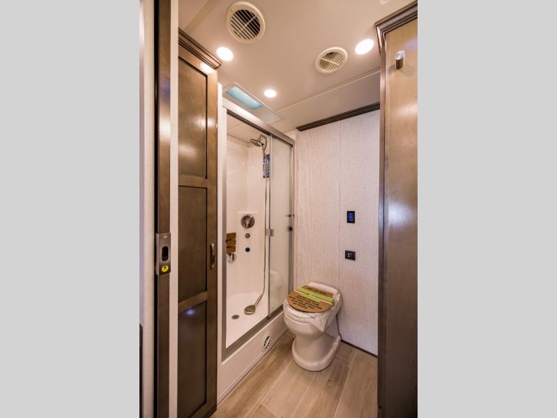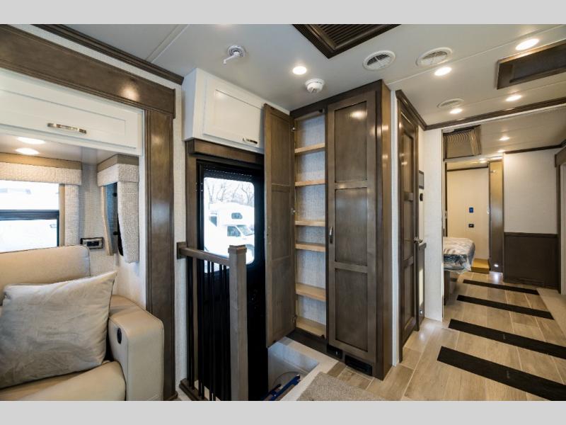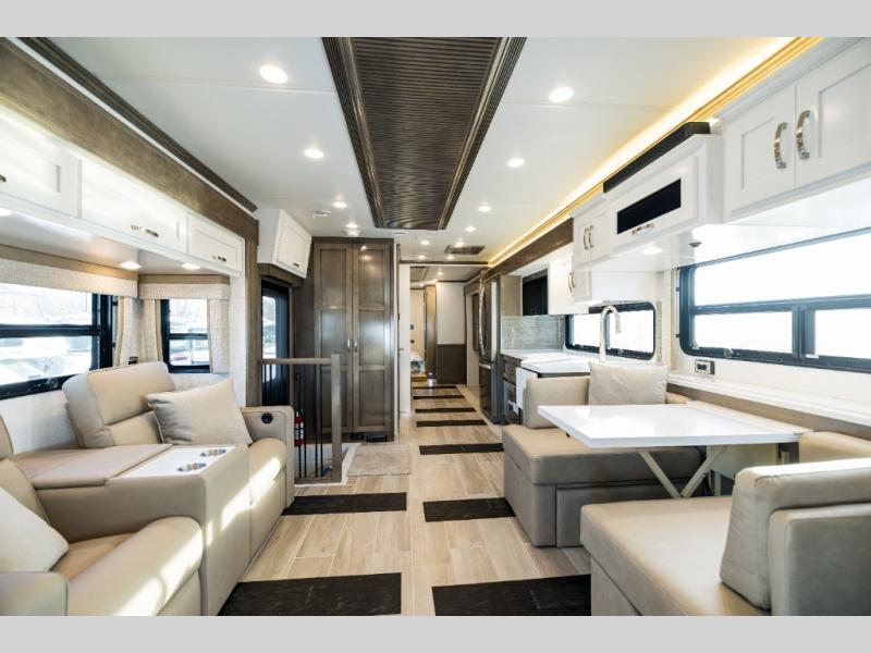 The Newmar Super Star Super C diesel motorhome is quite astonishing! It comes with hydraulic leveling jacks, a sky window with power shade in the cockpit for more natural light, wall-mounted sensors for heating and air conditioning, an 8.0kW Onan Diesel Quiet Series generator, and a multiplex lighting control system. You'll enjoy great comfort each night as you lie down on the plush pillowtop mattress, and the Villa Comfort Fit furniture will also be comfortable for relaxing or socializing. You will appreciate having a continuous water heater and a central vacuum with a tool kit, plus each model includes two 15k BTU heat pump A/C's and a 50k BTU furnace to keep you comfortable all year long!