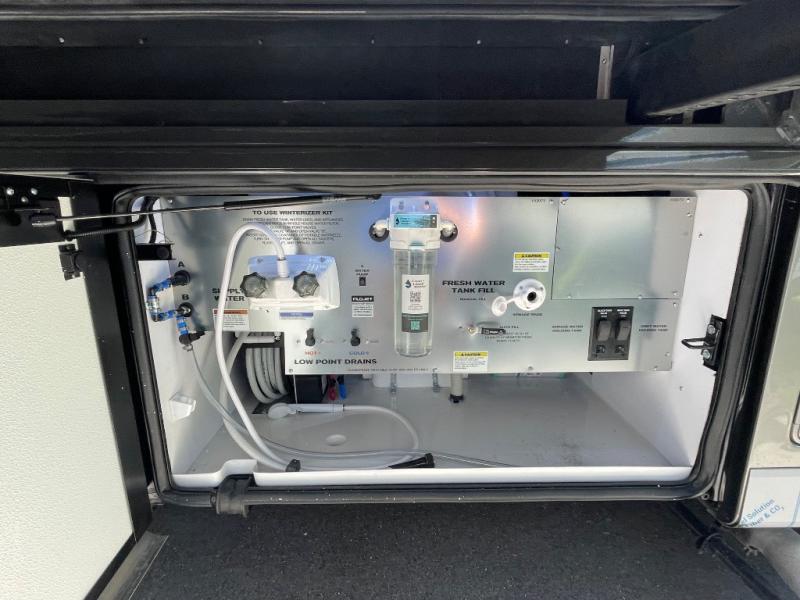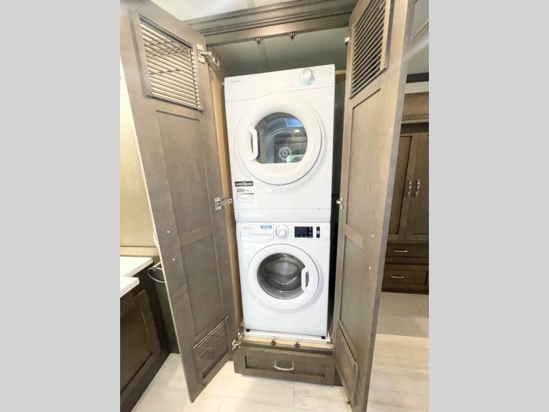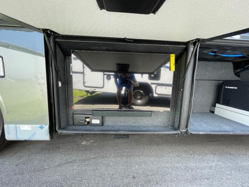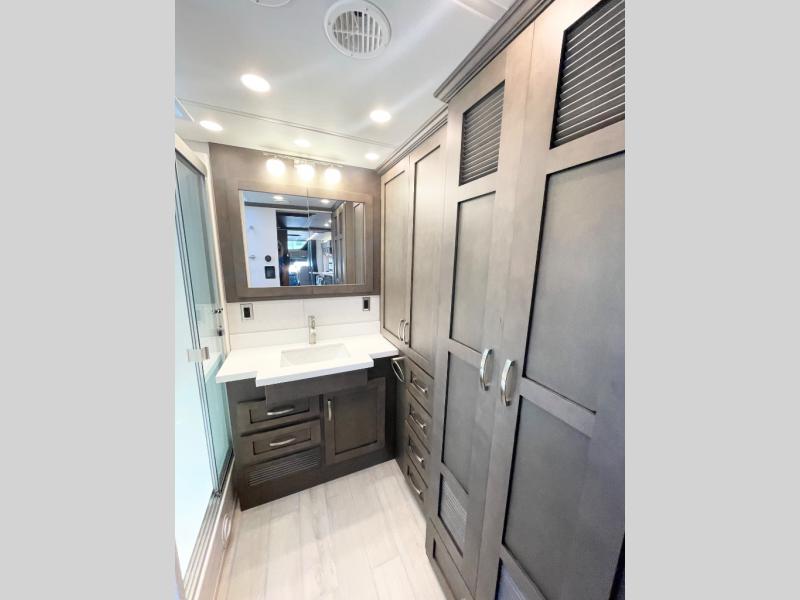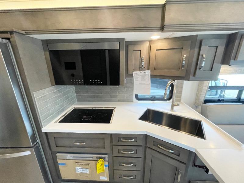 This unit has the same layout as model 4059, but you'll enjoy a longer exterior length on 4159 for a bit more space and a 450 HP for more power! Not only will you look forward to arriving at your destination, but you'll also look forward to using all of the excellent amenities found on this coach. There is great convenience with a full and half bathroom, and the kitchen is also quite accommodating with its all-electric flush-mount induction cooktop, countertop extension, and Whirlpool 19.7-cubic foot refrigerator. You'll have an amazing time gathering with friends on the hide-a-bed sofa or booth dinette (sleeper), and the swivel cab seats will add some extra lounge space. If you've grown tired of talking and just want to watch a movie, use one of the three Samsung LED 4K TVs.