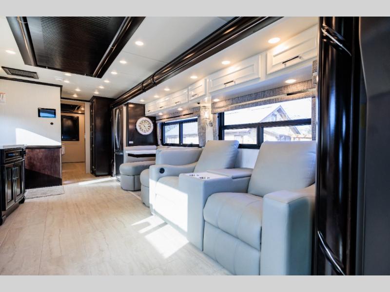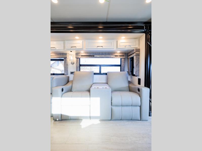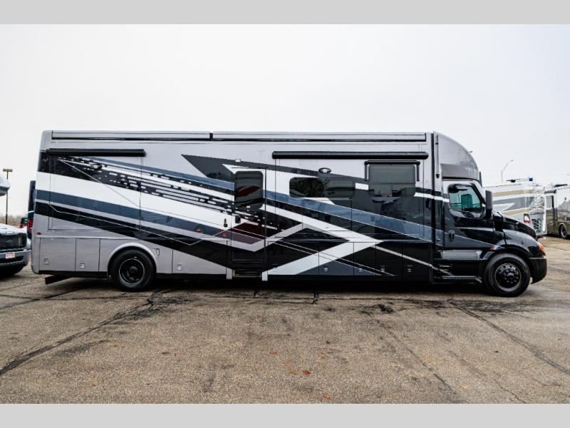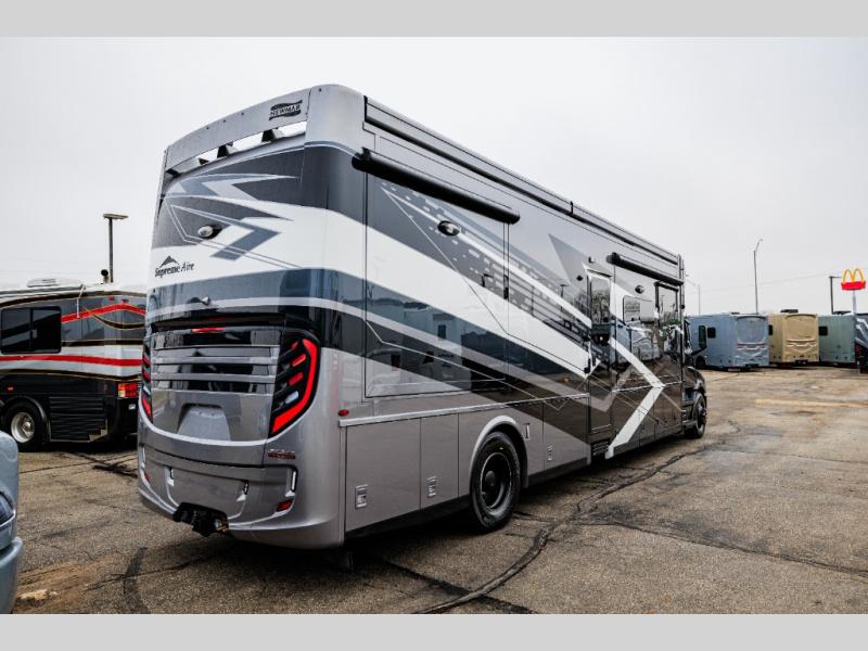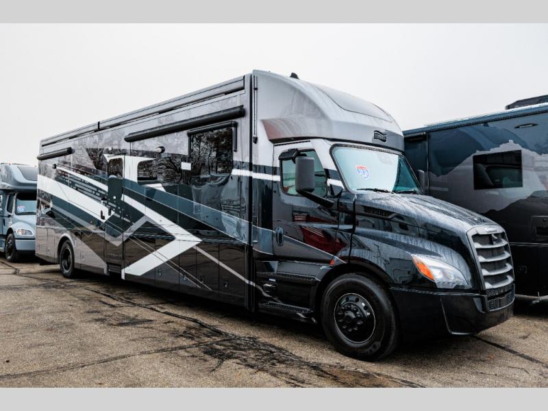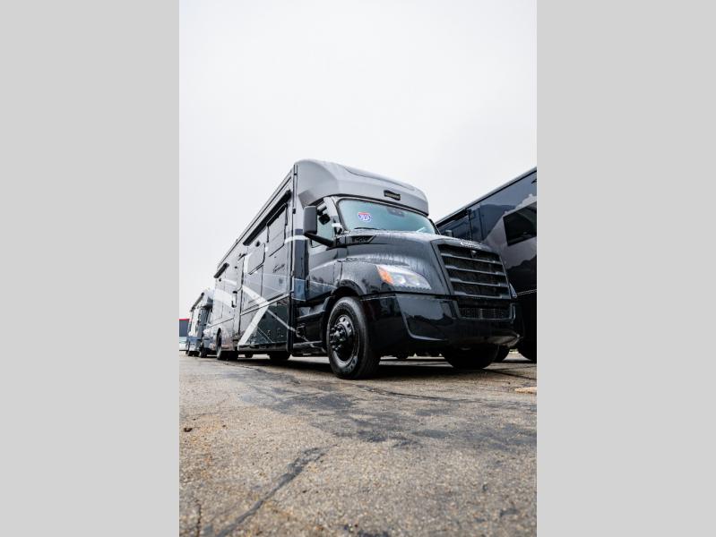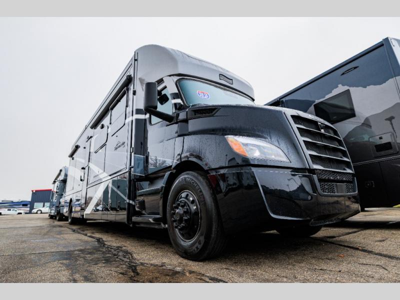 Each one of these Newmar Supreme Aire Super C diesel motorhomes are built with an industry-exclusive full-paint Masterpiece Finish exterior! They are powered by a hefty 525HP 12.8L Detroit DD13 diesel engine with a 1850 lb./ft. of torque and held together by a Freightliner Cascadia 116 chassis. A 8 kW Cummins diesel generator powers the units and the Nav-N-Go navigation system that comes with the 12.3" Xite dash monitor system will keep you right on track, and the Detroit Assurance Safety System will make the drive that much easier. This system includes object detection, intelligent high beams, pedestrian detection, and more safety features for your peace of mind. The full air-ride cab is exclusive to the Newmar Super C motorhomes and the plushier air-ride captain's chairs with 12V lumbar control welcomes you with comfort. Every model comes with stylish appointments and many conveniences, come find the perfect one for you today!