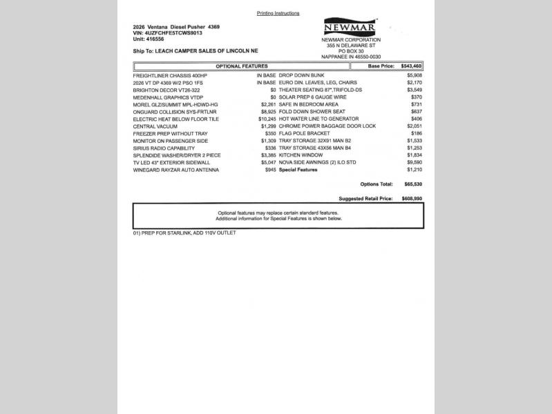 Newmar Ventana Class A diesel motorhome 4369 highlights: