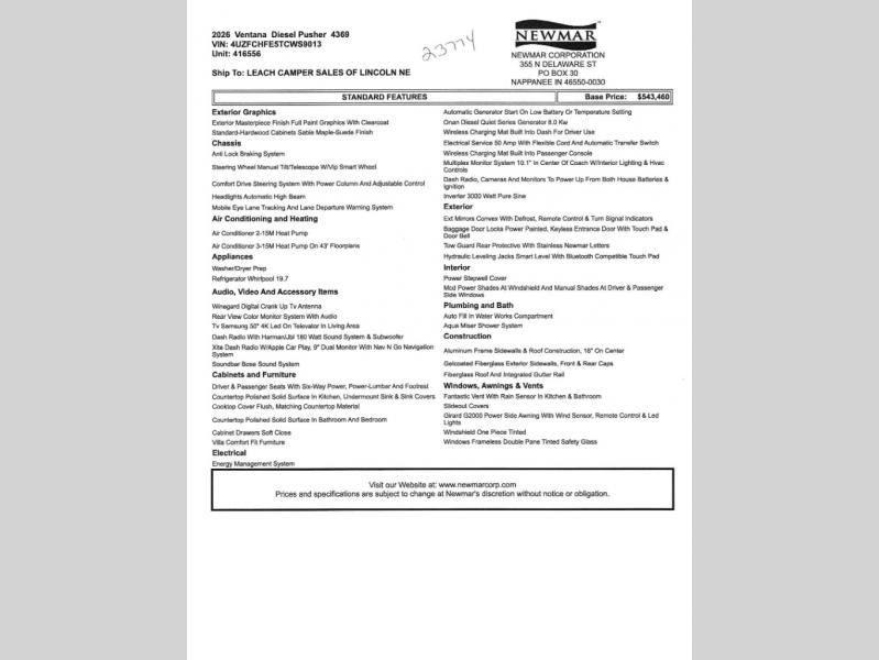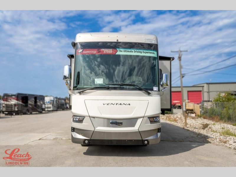Newmar's most flexible coach is found with the Ventana motorhome! The STAR foundation improves strength and durability, as well as a quieter and more stable ride than any other Class A diesel coach. The Freightliner chassis comes standard, or you can choose the optional Spartan chassis. Each model is constructed with gelcoat fiberglass exterior sidewalls and front and rear caps, along with Polar Pak R19 batten insulation in the roof so you can enjoy four seasons of fun. Some of the convenient cockpit features include an Xite dash radio with a Nav-N-Go navigation system, six-way power captain's seats, and the Mobileye lane tracking and lane departure system for added safety. You'll love the luxurious look of the porcelain tile floor and three stylish decor options, and each floorplan includes polished solid surface countertops in the kitchen, bath, and bedroom! The exterior is outfitted with the industry-exclusive Full-Paint Masterpiece Finish, Smart Level hydraulic leveling jacks, an optional entertainment center, and so much more!