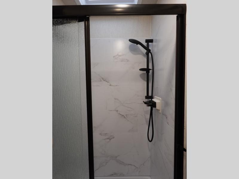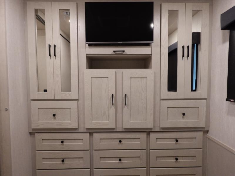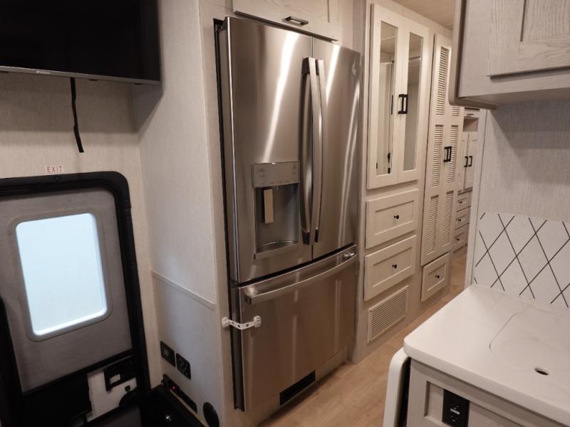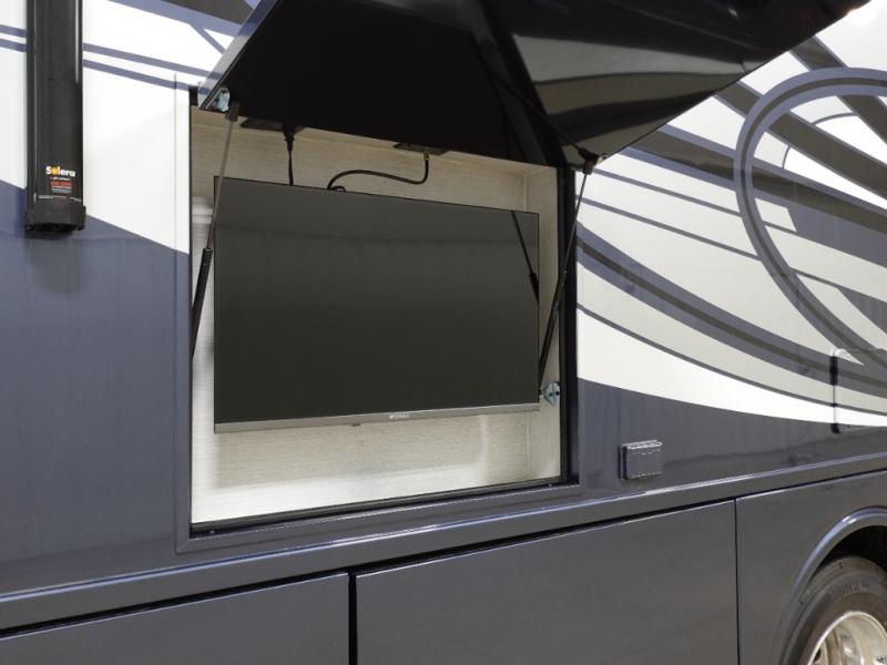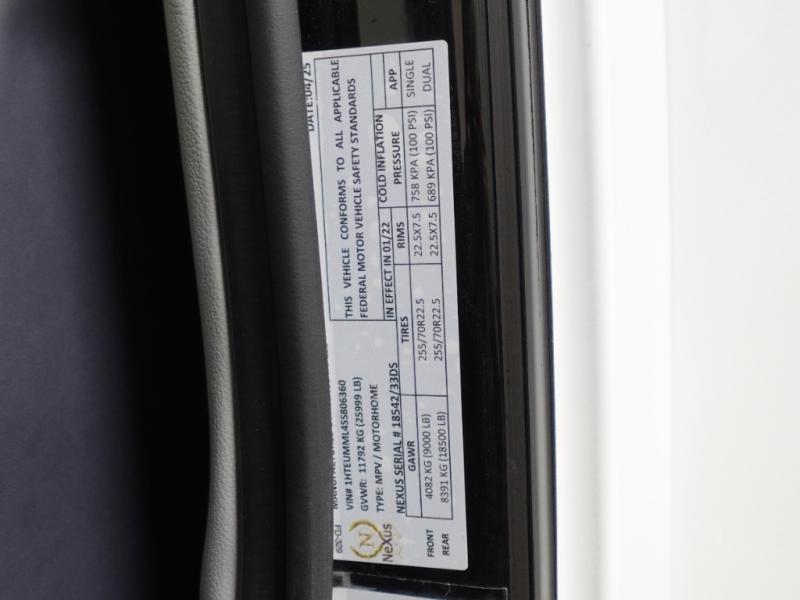 With any NeXus Ghost Super C diesel motorhome you will experience your dream with peace of mind thanks to the construction. From the composite substrate which is impervious to water, the protective diamond shield, and the seamless wraparound fiberglass roof, you can travel whenever you like with confidence. The interior raises the standard with luxury appointments with day/night roller shades, solid surface countertops throughout, stainless steel appliances, and many more luxuries. You will appreciate having an on-demand hot water heater onboard, along with two A/C units, a 30K BTU furnace, and an 8.0 diesel generator for all your power needs. Backup and side view cameras will also come in handy when driving, as well as a 10" touch screen with phone mirroring, and a Mobileye collision warning system for added safety.