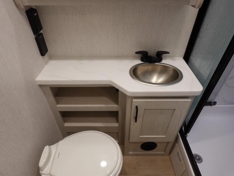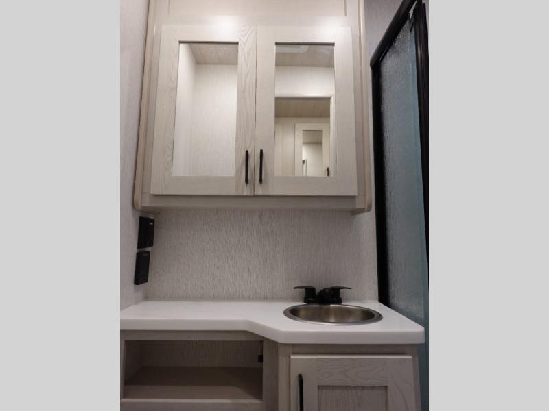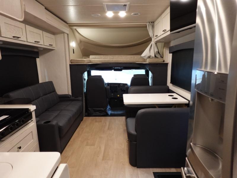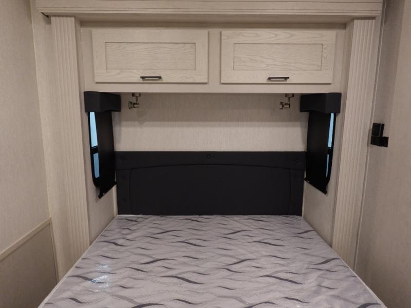 Traveling with your spouse or family is made easy in this coach from the spacious interior with two slide outs to the full bathroom allowing you to skip the public facilities! The cook will love the kitchen amenities including the 20.7 cu. ft. residential refrigerator, the stainless steel appliances, and the solid surface countertops. The kids or grandkids will love the cab over bunk and you will enjoy the RV queen bed in the rear bedroom. You will find storage throughout the inside and the outside, plus many more features you are sure to love!