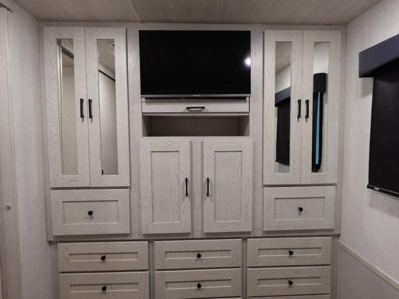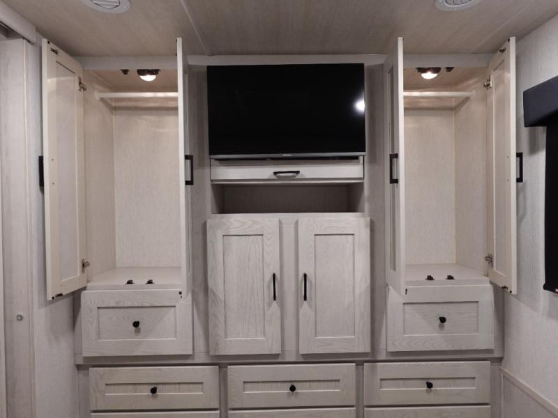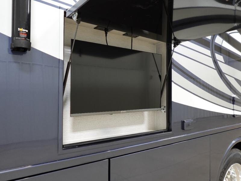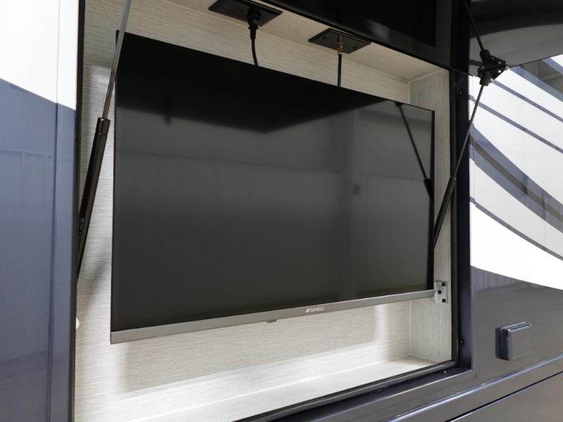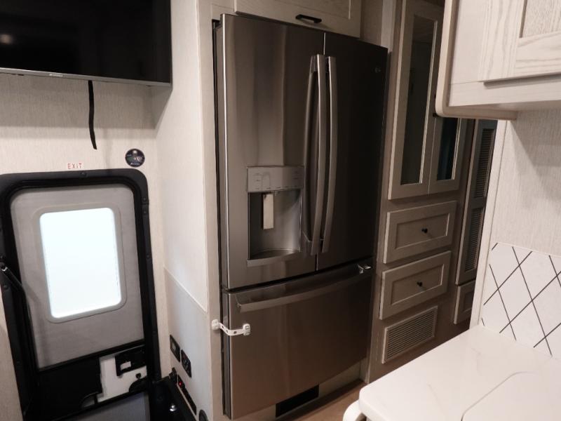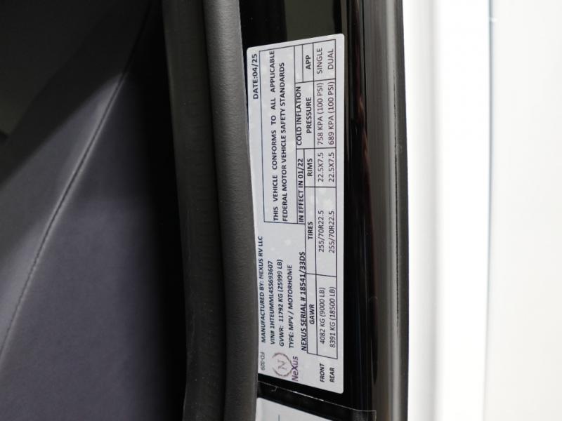 With any NeXus Ghost Super C diesel motorhome you will experience your dream with peace of mind thanks to the construction. From the composite substrate which is impervious to water, the protective diamond shield, and the seamless wraparound fiberglass roof, you can travel whenever you like with confidence. The interior raises the standard with luxury appointments with day/night roller shades, solid surface countertops throughout, stainless steel appliances, and many more luxuries. You will appreciate having an on-demand hot water heater onboard, along with two A/C units, a 30K BTU furnace, and an 8.0 diesel generator for all your power needs. Backup and side view cameras will also come in handy when driving, as well as a 10" touch screen with phone mirroring, and a Mobileye collision warning system for added safety.