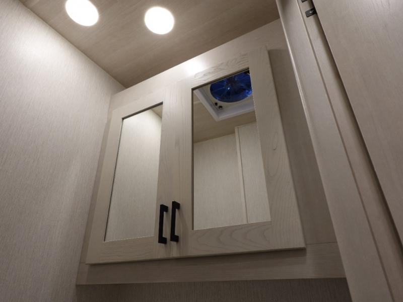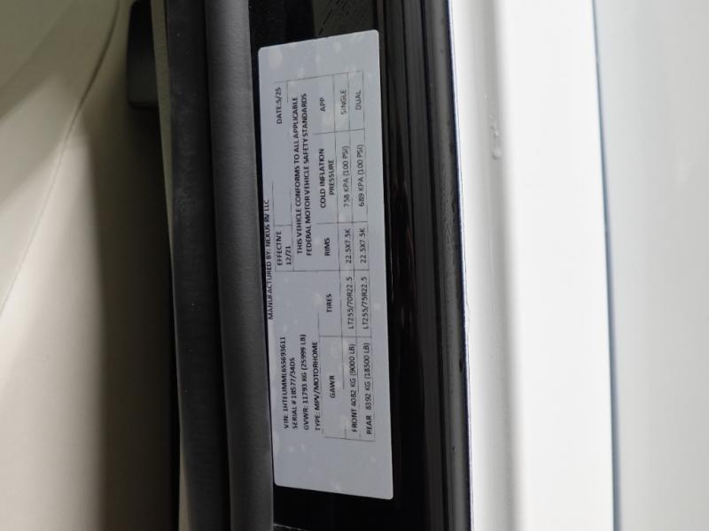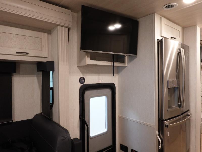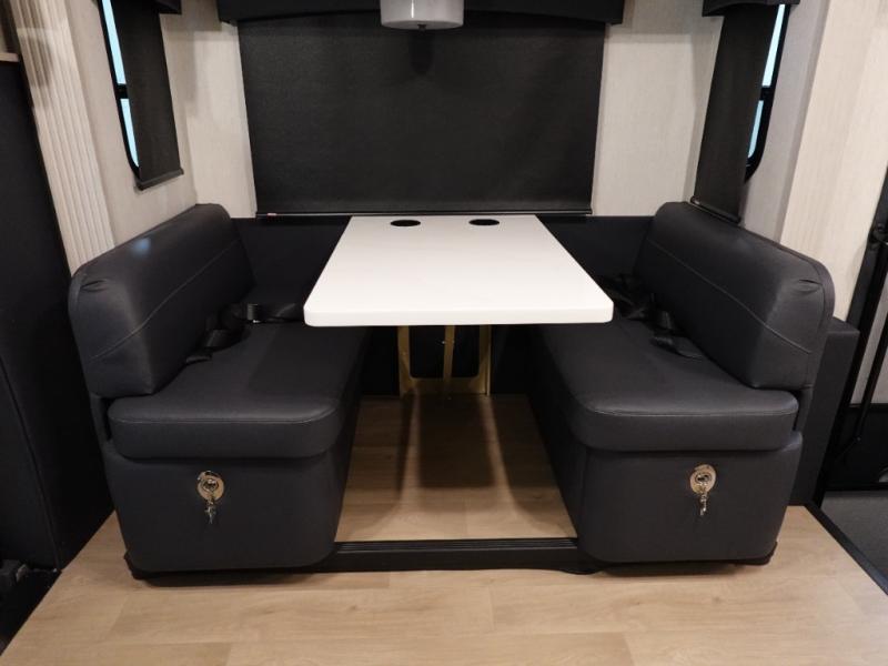 With any NeXus Ghost Super C diesel motorhome you will experience your dream with peace of mind thanks to the construction. From the composite substrate which is impervious to water, the protective diamond shield, and the seamless wraparound fiberglass roof, you can travel whenever you like with confidence. The interior raises the standard with luxury appointments with day/night roller shades, solid surface countertops throughout, stainless steel appliances, and many more luxuries. You will appreciate having an on-demand hot water heater onboard, along with two A/C units, a 30K BTU furnace, and an 8.0 diesel generator for all your power needs. Backup and side view cameras will also come in handy when driving, as well as a 10" touch screen with phone mirroring, and a Mobileye collision warning system for added safety.
