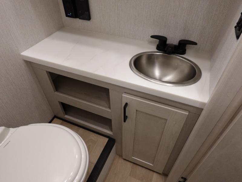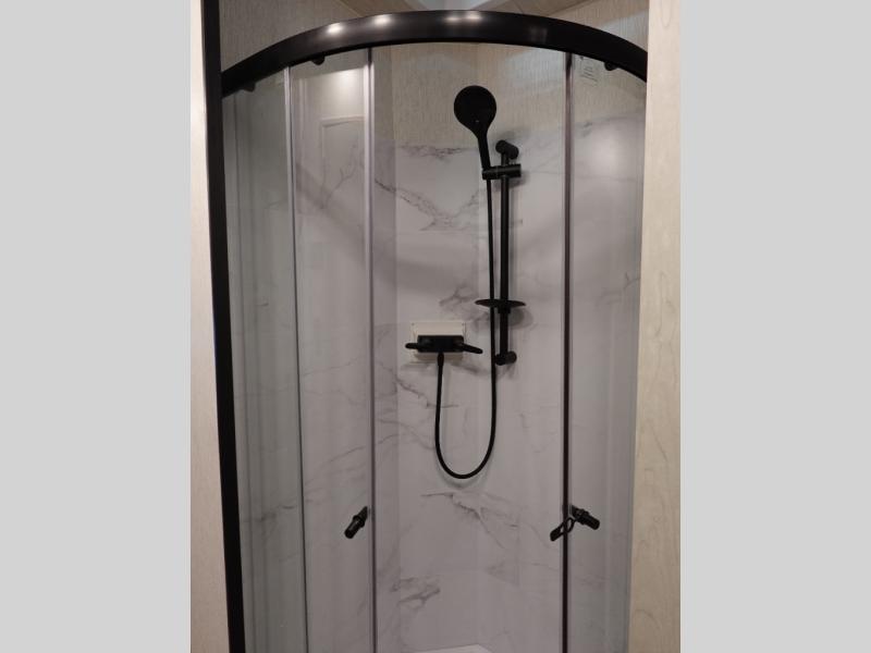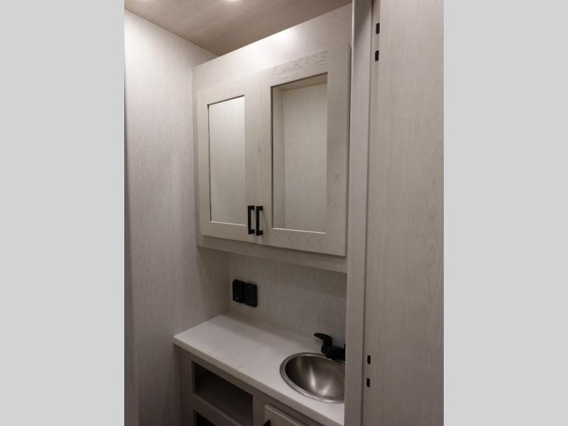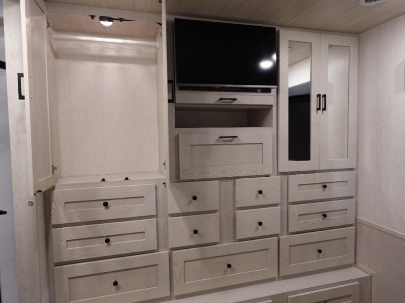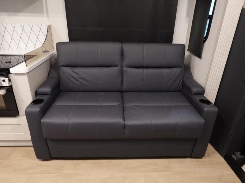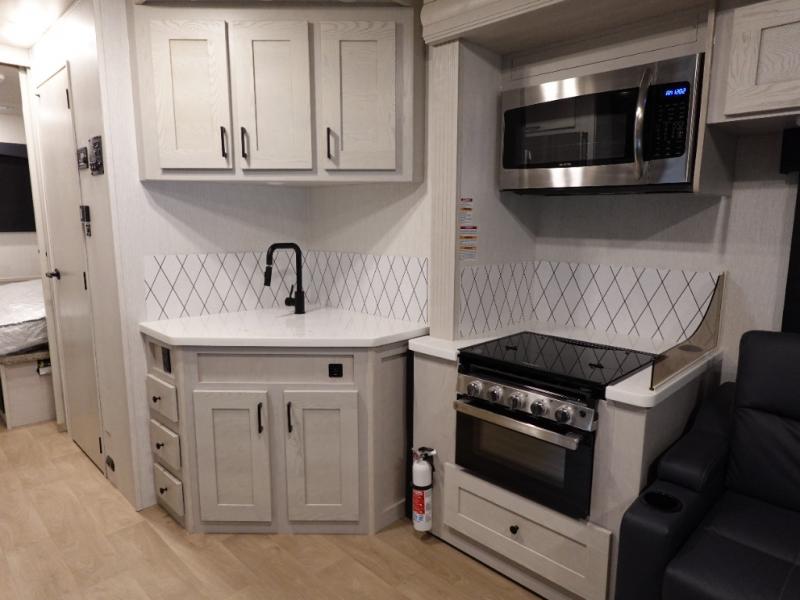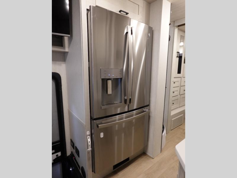 Load up your family and head out for a fun vacation or month-long trek to see new places and experience new activities. You can keep everyone fed along the way with home cooked meals using the stainless steel appliances including a convection microwave and 20.7 cu. ft. residential refrigerator. The split-style bath offers privacy with a sink and toilet across the hall from the radius shower. The rear bedroom also provides a king bed and an LED TV. You can relax inside on the furniture that also provides sleeping space and watch the LED TV, or relax under the electric patio awning with LED lighting.