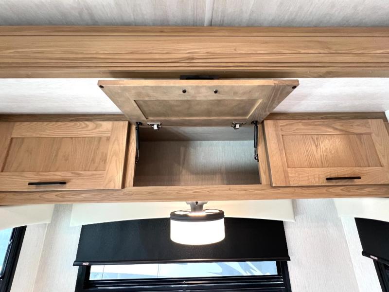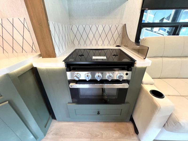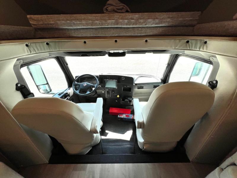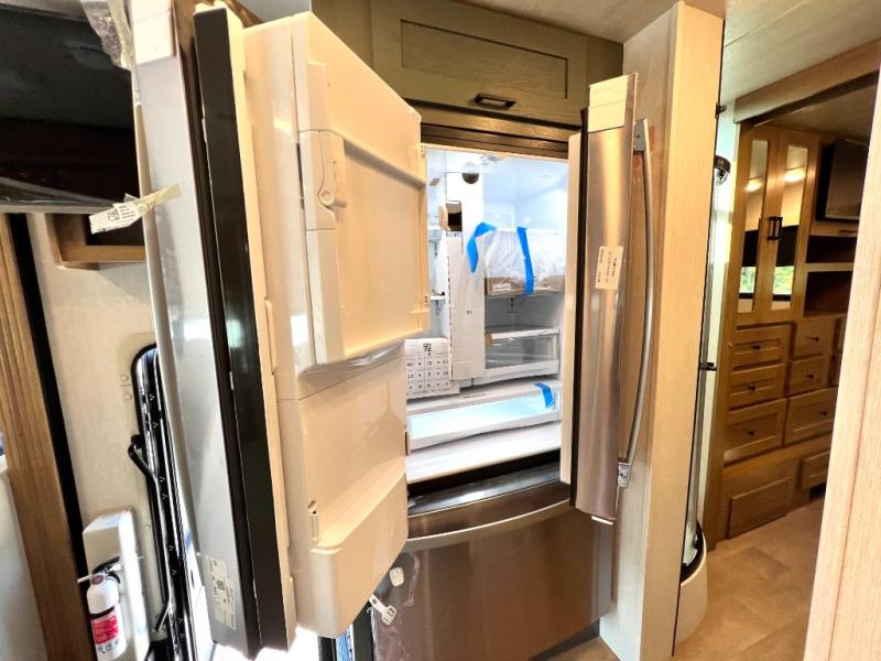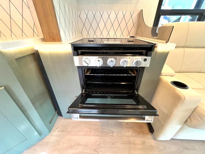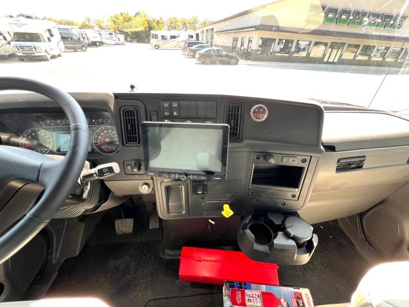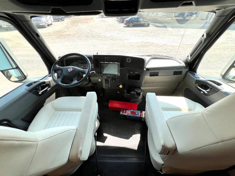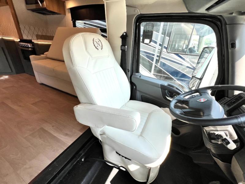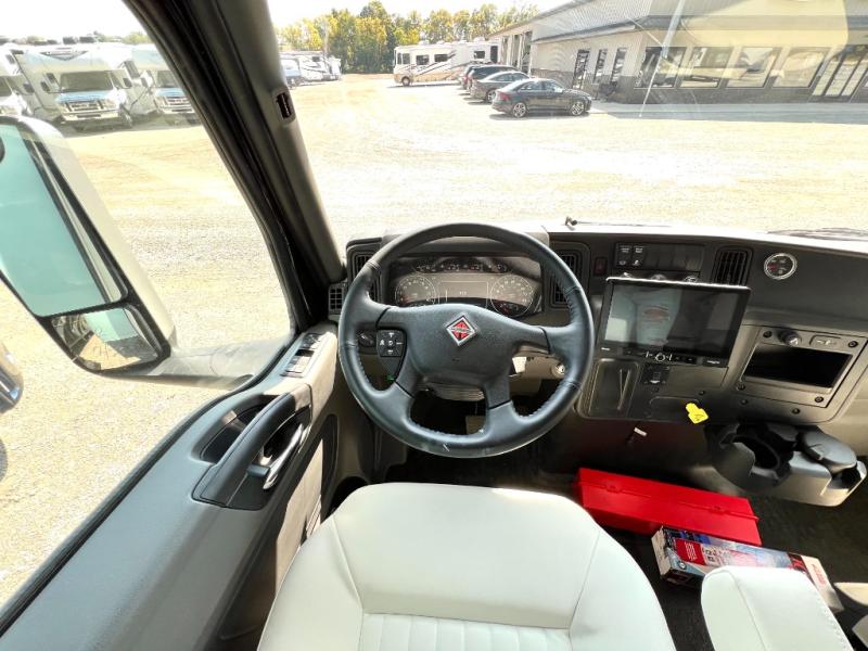 With any NeXus Ghost Super C diesel motorhome you will experience your dream with peace of mind thanks to the construction. From the composite substrate which is impervious to water, the protective diamond shield, and the seamless wraparound fiberglass roof, you can travel whenever you like with confidence. The interior raises the standard with luxury appointments with day/night roller shades, solid surface countertops throughout, stainless steel appliances, and many more luxuries. You will appreciate having an on-demand hot water heater onboard, along with two A/C units, a 30K BTU furnace, and an 8.0 diesel generator for all your power needs. Backup and side view cameras will also come in handy when driving, as well as a 10" touch screen with phone mirroring, and a Mobileye collision warning system for added safety.