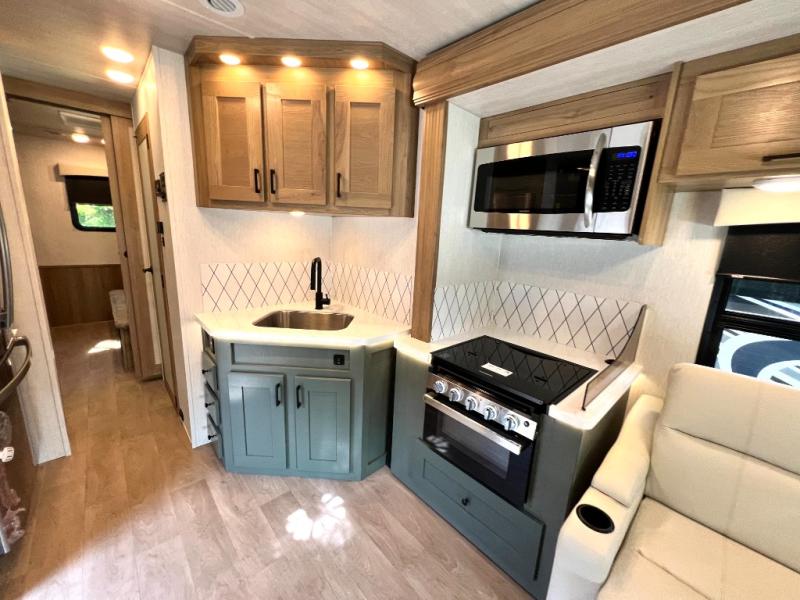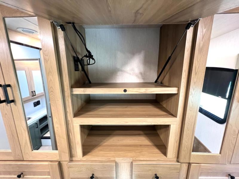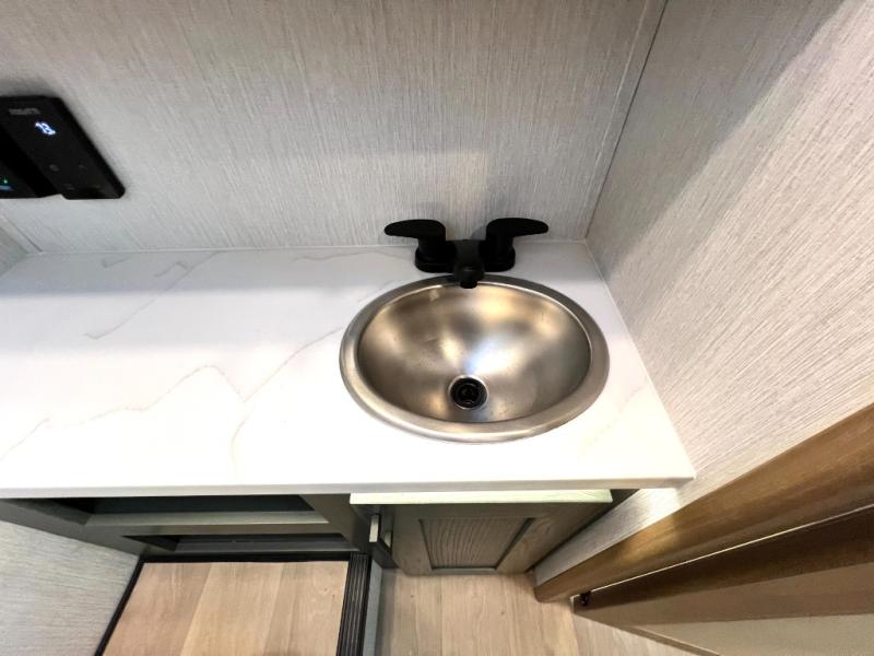 Load up your family and head out for a fun vacation or month-long trek to see new places and experience new activities. You can keep everyone fed along the way with home cooked meals using the stainless steel appliances including a convection microwave and 20.7 cu. ft. residential refrigerator. The split-style bath offers privacy with a sink and toilet across the hall from the radius shower. The rear bedroom also provides a king bed and an LED TV. You can relax inside on the furniture that also provides sleeping space and watch the LED TV, or relax under the electric patio awning with LED lighting.