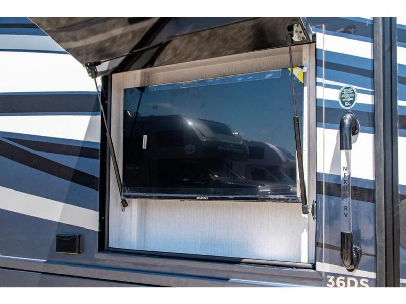 This unit is approximately 36 feet in length and features 2 slides, a 360HP Cummins diesel engine, International durastar chassis, and a king bed. Additional features found in the Nexus RV include galvanized steel storage boxes, heated and enclosed holding tanks, upgraded flooring and "plug and play" electrical harnesses throughout the coach making every Nexus RV's electrical system more dependable. Strength, Safety and Customer Satisfaction are the 3 cornerstones found in every Nexus RV. The strength of the International chassis is nothing short of legendary and the 360HP diesel engine delivers exceptional power and performance. The construction of the Nexus RV far exceeds the industry norm. First, and arguable foremost, the Nexus RV boast an all STEEL cage construction instead of the normal aluminum framed construction found in the competition. Steel cage construction is 72% stronger than aluminum and is only common place is RVs such as the Foretravel Realm or a Prevost bus conversion; both of which would have an M.S.R.P. value well over $1 million dollars! That same commitment to strength and safety is found throughout the Nexus line-up. You will also find construction highlights such as 2 layers of Azdel substrate in the sidewalls & roof! The Azdel product provides 3X the insulation value of wood and is 50% lighter which will help optimize your engine’s performance and fuel economy, and because it is not a wood material harvested from the rain forest it is both greener and provides a less that 1% chance of retaining any moisture that could ever lead to wall separation or mold. It is also formaldehyde free, impact resistant and a sound absorbing material creating a much quieter RV. To further protect and insulate the RV from the elements Nexus utilizes high grade UV protected automotive window seals. The roof is a pre-stamped metal roof truss system that is further highlighted by the exterior layer of seamless fiberglass as opposed to the normal TPO or "rubber roofs" found in most RVs built today.