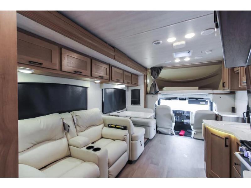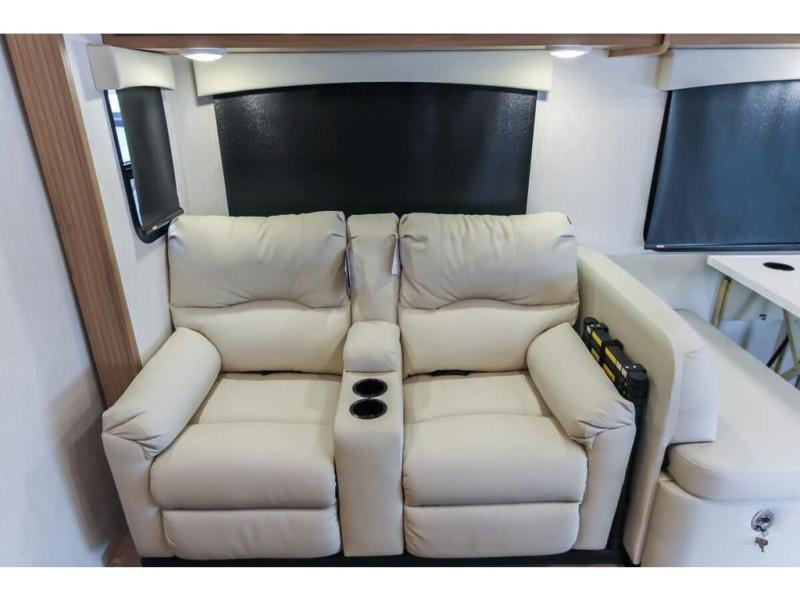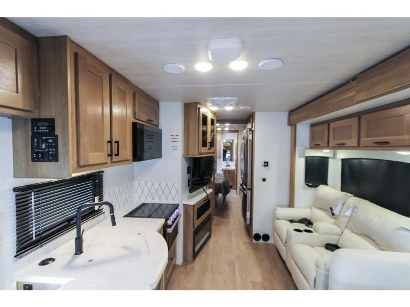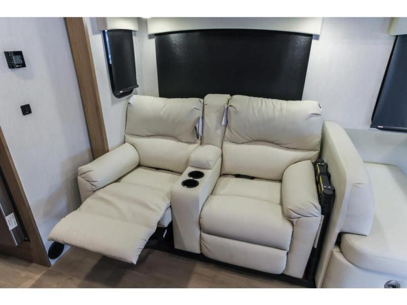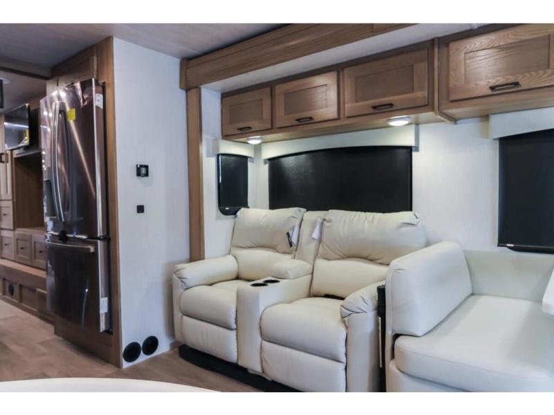 With any NeXus Ghost Super C diesel motorhome you will experience your dream with peace of mind thanks to the construction. From the composite substrate which is impervious to water, the protective diamond shield, and the seamless wraparound fiberglass roof, you can travel whenever you like with confidence. The interior raises the standard with luxury appointments with day/night roller shades, solid surface countertops throughout, stainless steel appliances, and many more luxuries. You will appreciate having an on-demand hot water heater onboard, along with two A/C units, a 30K BTU furnace, and an 8.0 diesel generator for all your power needs. Backup and side view cameras will also come in handy when driving, as well as a 10" touch screen with phone mirroring, and a Mobileye collision warning system for added safety.