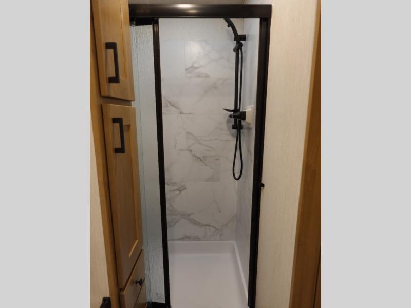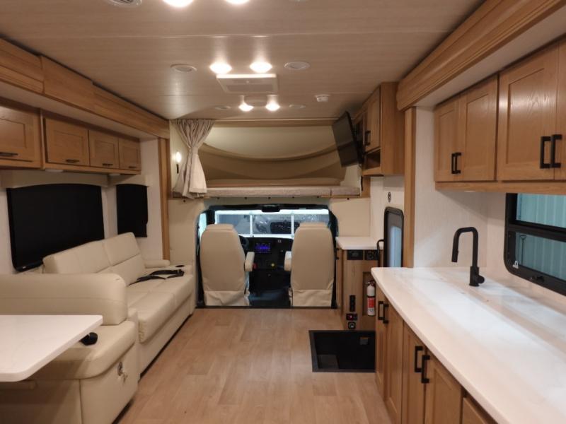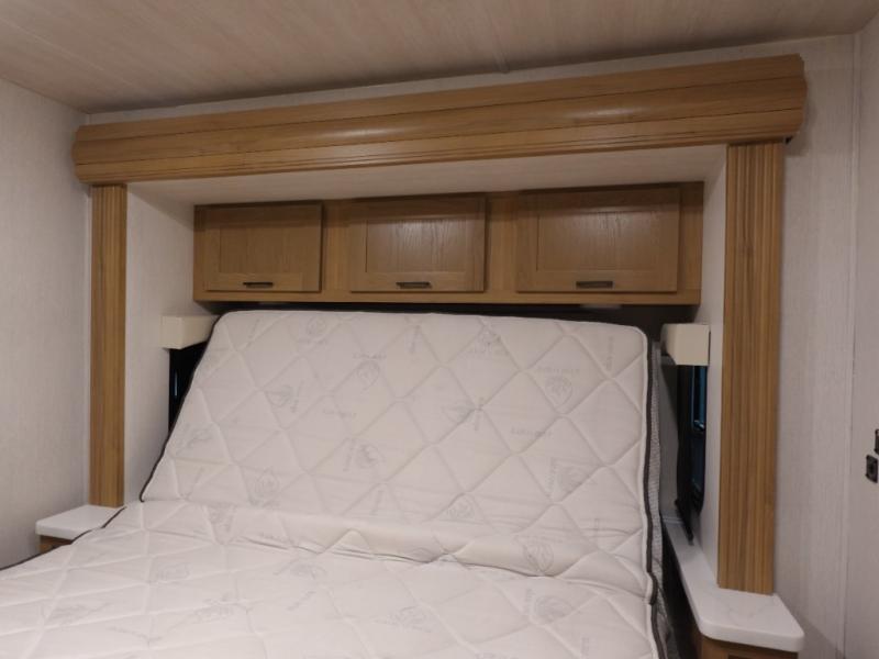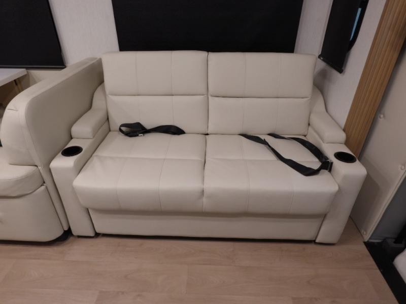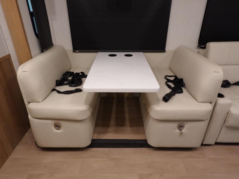 With any NeXus Ghost Super C diesel motorhome you will experience your dream with peace of mind thanks to the construction. From the composite substrate which is impervious to water, the protective diamond shield, and the seamless wraparound fiberglass roof, you can travel whenever you like with confidence. The interior raises the standard with luxury appointments with day/night roller shades, solid surface countertops throughout, stainless steel appliances, and many more luxuries. You will appreciate having an on-demand hot water heater onboard, along with two A/C units, a 30K BTU furnace, and an 8.0 diesel generator for all your power needs. Backup and side view cameras will also come in handy when driving, as well as a 10" touch screen with phone mirroring, and a Mobileye collision warning system for added safety.