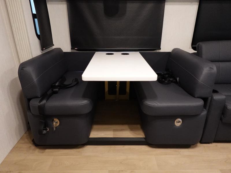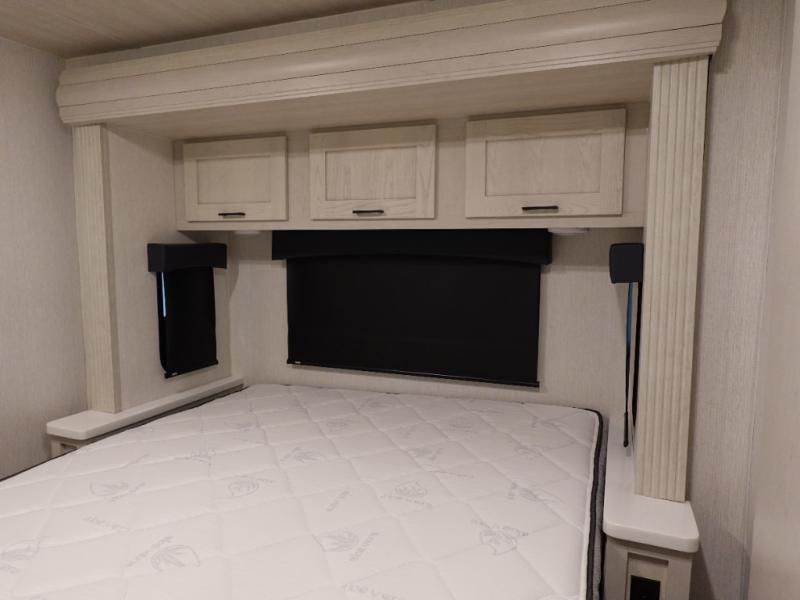With any NeXus Ghost Super C diesel motorhome you will experience your dream with peace of mind thanks to the construction. From the composite substrate which is impervious to water, the protective diamond shield, and the seamless wraparound fiberglass roof, you can travel whenever you like with confidence. The interior raises the standard with luxury appointments with day/night roller shades, solid surface countertops throughout, stainless steel appliances, and many more luxuries. You will appreciate having an on-demand hot water heater onboard, along with two A/C units, a 30K BTU furnace, and an 8.0 diesel generator for all your power needs. Backup and side view cameras will also come in handy when driving, as well as a 10" touch screen with phone mirroring, and a Mobileye collision warning system for added safety.