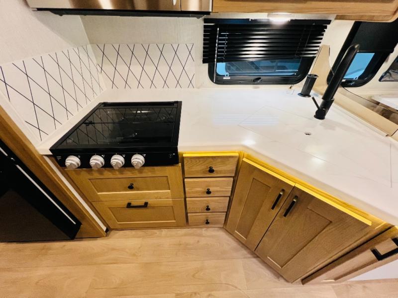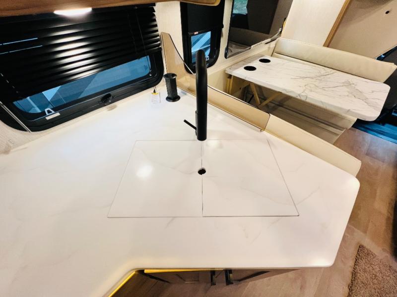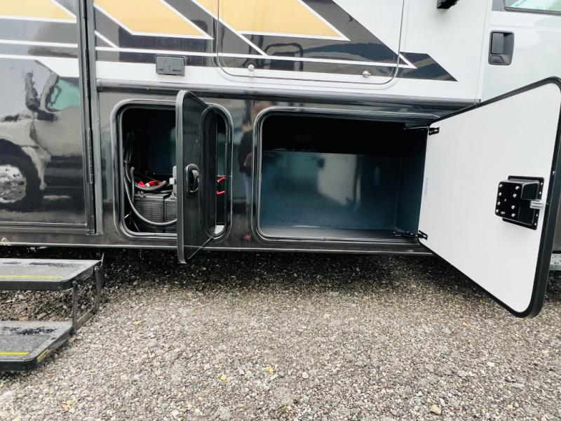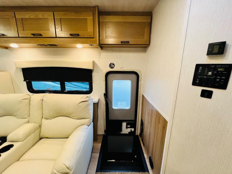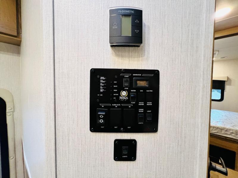 The NeXus RV Maximus Super C Diesel motorhomes combine rugged performance with residential comfort, starting with its impressive 20,000 lb hitch rating and 50,000 lb GCWR, giving you the capability to tow heavy loads with confidence. The exterior stands out with deluxe full-body paint, frameless tinted windows, and a fiberglass front cap with an automotive bonded window, blending durability with sleek, modern styling. Convenience is built in with fully automatic leveling jacks and slam-latch side-hinged compartment doors, making setup and storage effortless wherever you travel. For relaxation, enjoy the electric patio awning with LED lighting and side-view cameras, providing comfort and safety for every adventure on the open road.