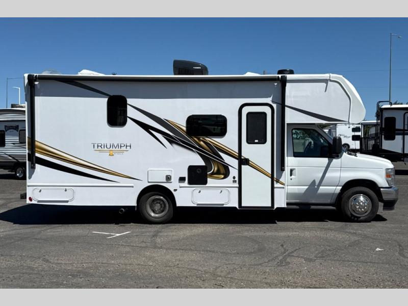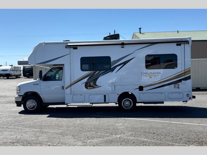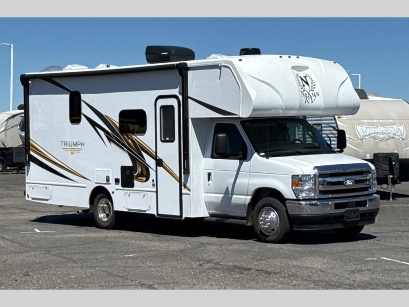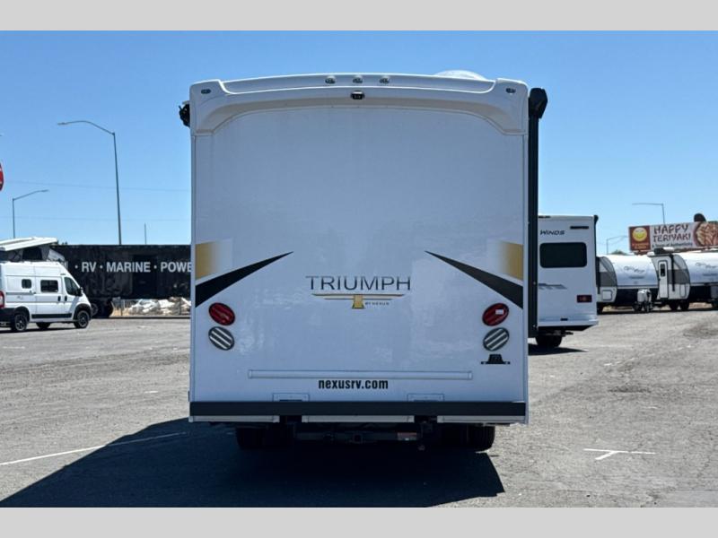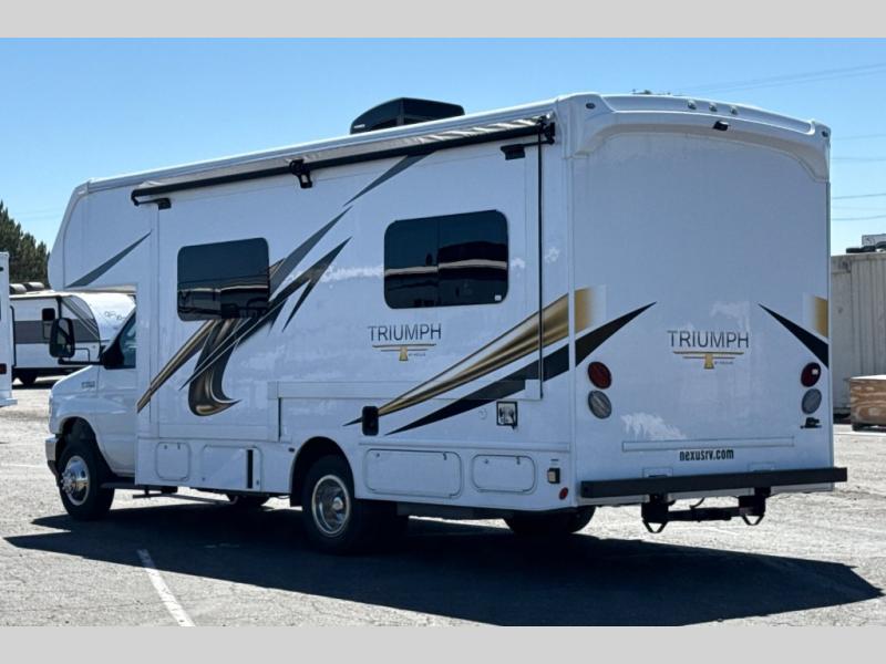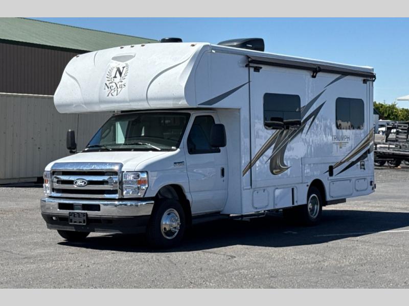 Build your dream with one of these NeXus RV Triumph Sport Series Class C gas motorhomes! Their high strength low alloy lightweight steel cage sidewalls and roof is 72% stronger and the composite substrate is impervious to water, plus their seamless fiberglass roof is damage resistant too. There are rubber-lined galvanized steel trunk boxes to keep your gear secure, an electric awning with LED lighting, and a rear back up camera to make parking easier than ever. You will enjoy their sleek interiors with upgraded flooring, upgraded window treatments, and night roller shades. There is also a generator to keep you powered up and a TV in the living room for your entertainment needs!