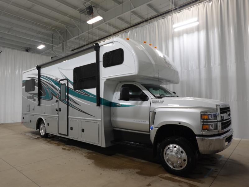 The Rebel Super C diesel motorhome by Nexus RV sits on a Chevy Silverado chassis with a 350 HP Duramax engine and 700 ft. lb. of torque for power you can feel! The exterior is eye-catching with its sleek seamless gelcoat fiberglass sidewalls and deluxe four-color body paint, along with a seamless wraparound fiberglass roof to ensure years of use. These 4x4 models include many convenient amenities such as, a water filtration system throughout, a 6.0 Onan diesel generator, and a Winegard 360 + with Gateway 4G LTE WiFi router to keep you connected to the outside world as you travel the country. The interior is made bright and open with LED lighting, and you will love the nickel pull handles and fixtures, plus window treatments and night roller shades for complete privacy.