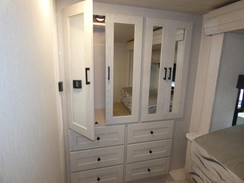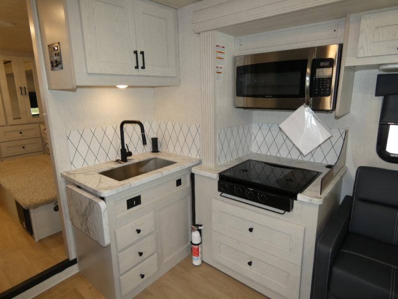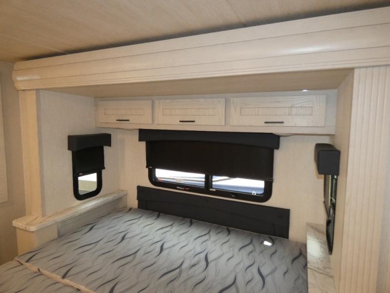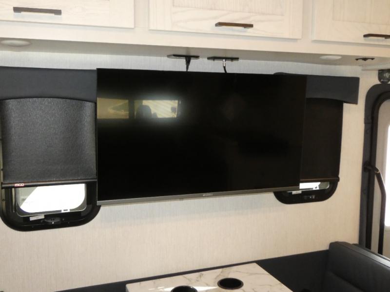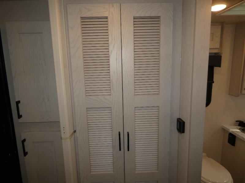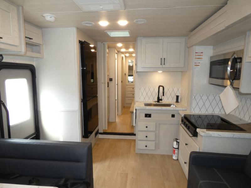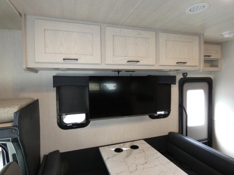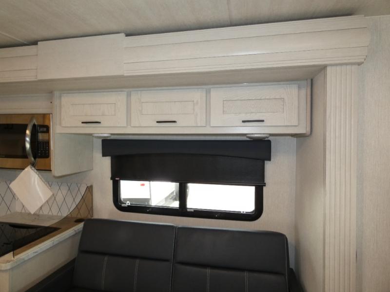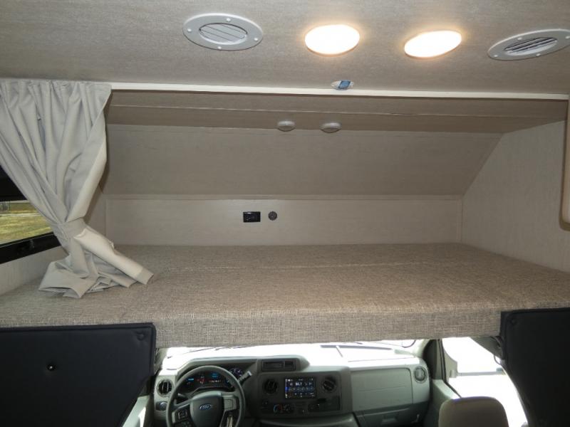 Experience your best vacations in this motorhome! You and your spouse will enjoy having your own private bedroom with a 72" x 74" king bed slide and a wardrobe to store your clothes. Next to the bedroom is the rear corner bathroom which has a 24" x 32" shower with a skylight and an area to add a washer and dryer combo. Prepare your best home cooked meals with the three burner cooktop and the residential 10 cu. ft. refrigerator with 1,000 watt inverter, and enjoy them at the booth dinette which can transform into an extra sleeping space. Speaking of sleeping spaces, you can also use the bunk over cab as a sleeping spot and transform the 64" hide-a-bed sofa into a sleeping space too!