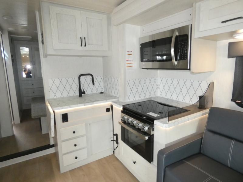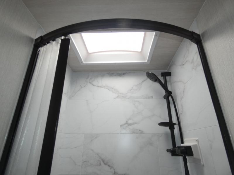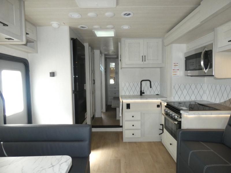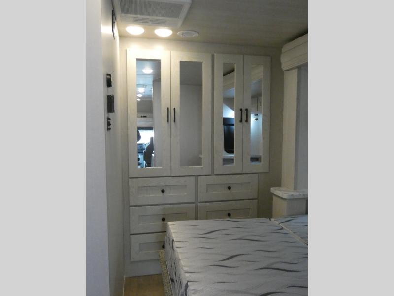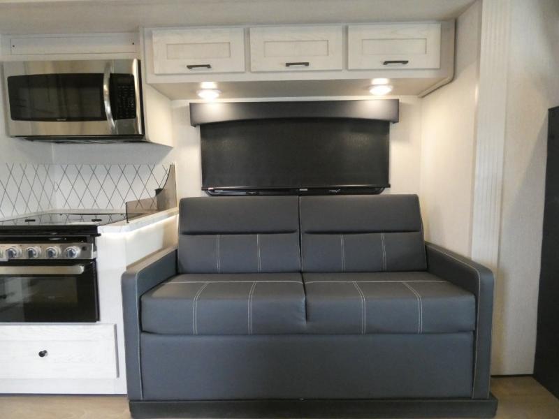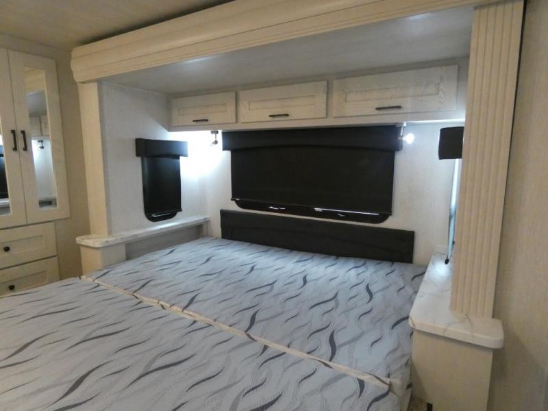 Experience your best vacations in this motorhome! You and your spouse will enjoy having your own private bedroom with a 72" x 74" king bed slide and a wardrobe to store your clothes. Next to the bedroom is the rear corner bathroom which has a 24" x 32" shower with a skylight. Prepare your best home cooked meals with the three burner cooktop and the residential 10 cu. ft. refrigerator with 1,000 watt inverter, and enjoy them at the booth dinette which can transform into an extra sleeping space. Speaking of sleeping spaces, you can also use the bunk over cab as a sleeping spot and transform the 64" hide-a-bed sofa into a sleeping space too!