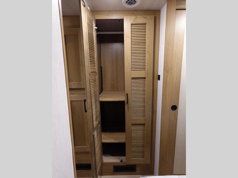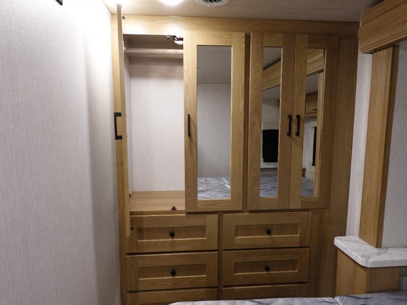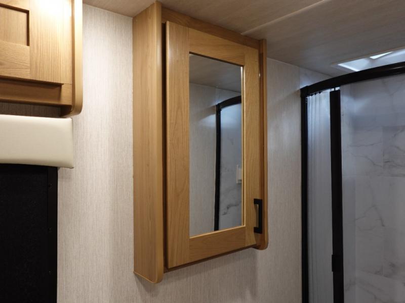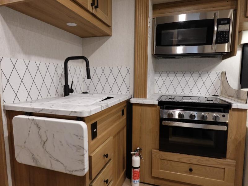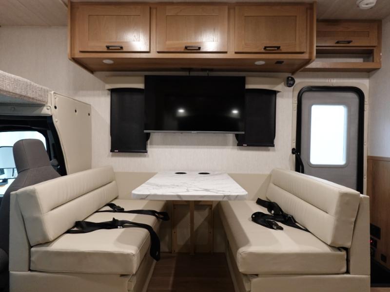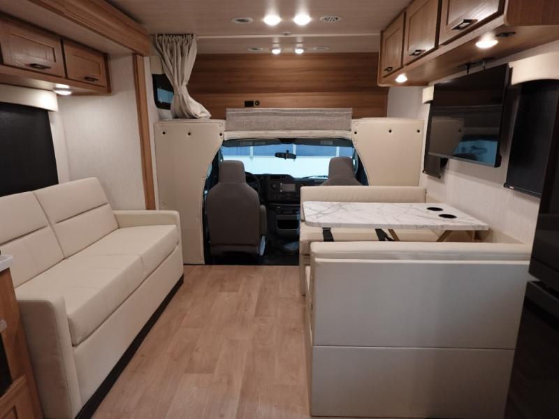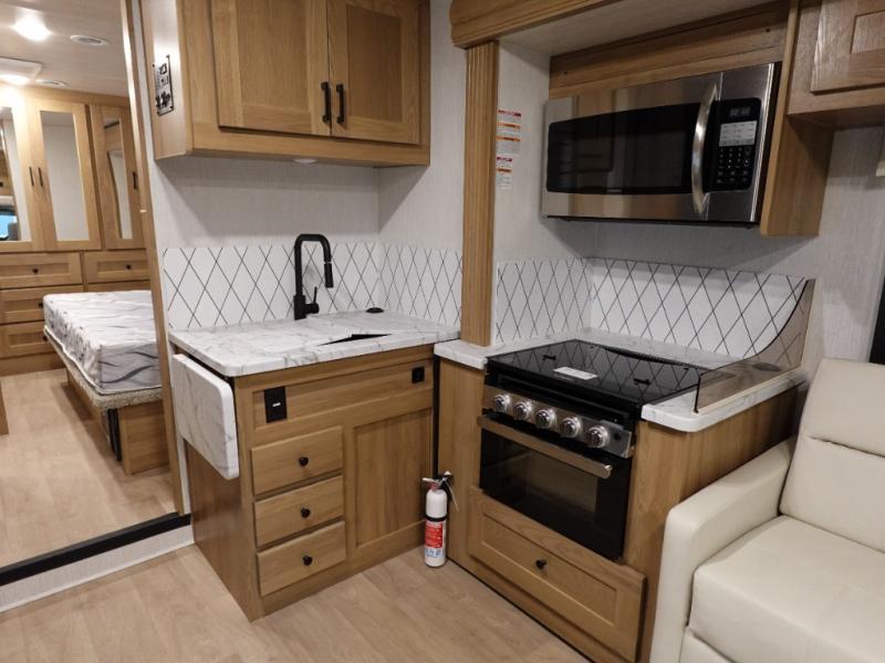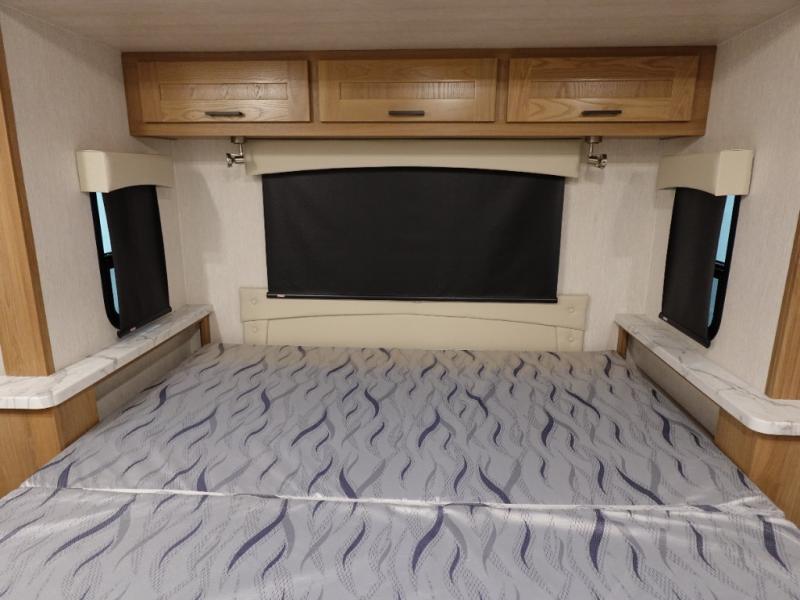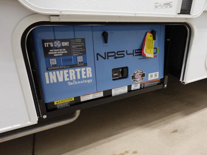Experience your best vacations in this motorhome! You and your spouse will enjoy having your own private bedroom with a 72" x 74" king bed slide and a wardrobe to store your clothes. Next to the bedroom is the rear corner bathroom which has a 24" x 32" shower with a skylight and an area to add a washer and dryer combo. Prepare your best home cooked meals with the three burner cooktop and the residential 10 cu. ft. refrigerator with 1,000 watt inverter, and enjoy them at the booth dinette which can transform into an extra sleeping space. Speaking of sleeping spaces, you can also use the bunk over cab as a sleeping spot and transform the 64" hide-a-bed sofa into a sleeping space too!
