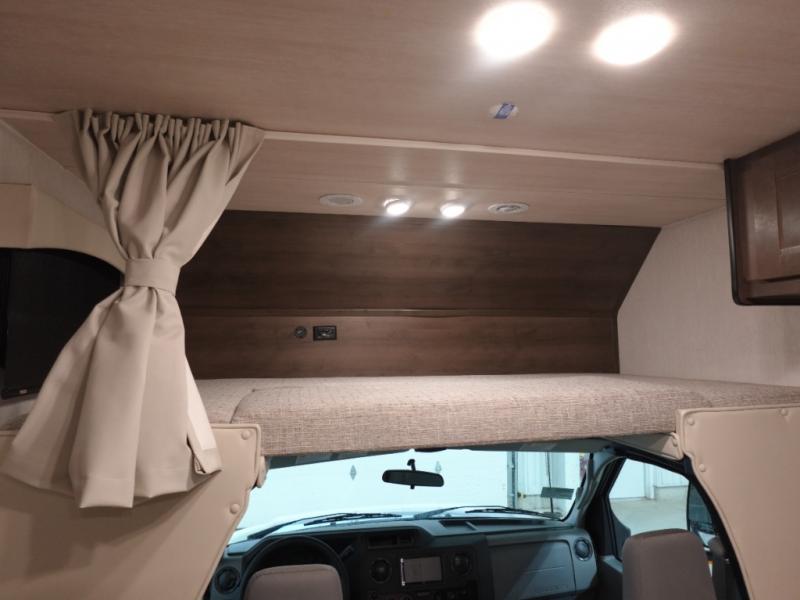 Experience your best vacations in this motorhome! You and your spouse will enjoy having your own private bedroom with a 72" x 74" king bed slide and a wardrobe to store your clothes. Next to the bedroom is the rear corner bathroom which has a 24" x 32" shower with a skylight and an area to add the optional washer and dryer combo. Prepare your best home cooked meals with the three burner cooktop and the residential 10 cu. ft. refrigerator with 1,000 watt inverter, and enjoy them at the booth dinette which can transform into an extra sleeping space. Speaking of sleeping spaces, you can also use the bunk over cab as a sleeping spot and transform the 64" hide-a-bed sofa into a sleeping space too!