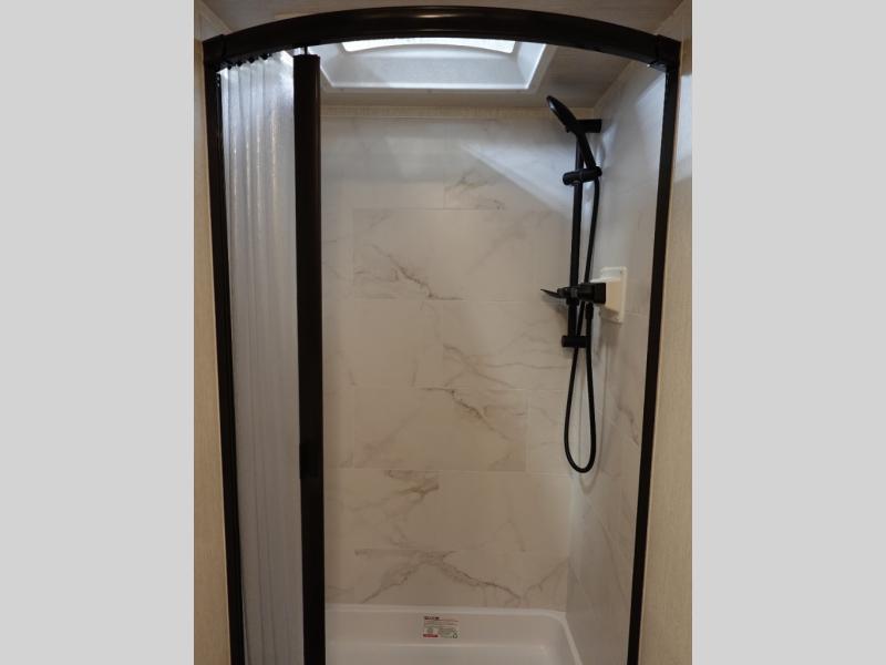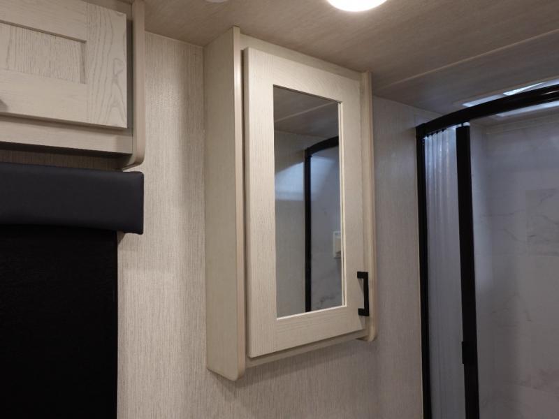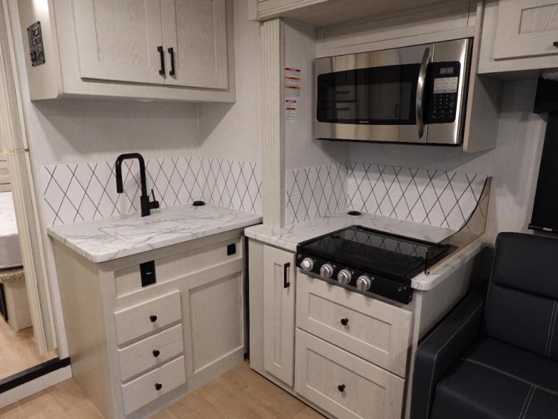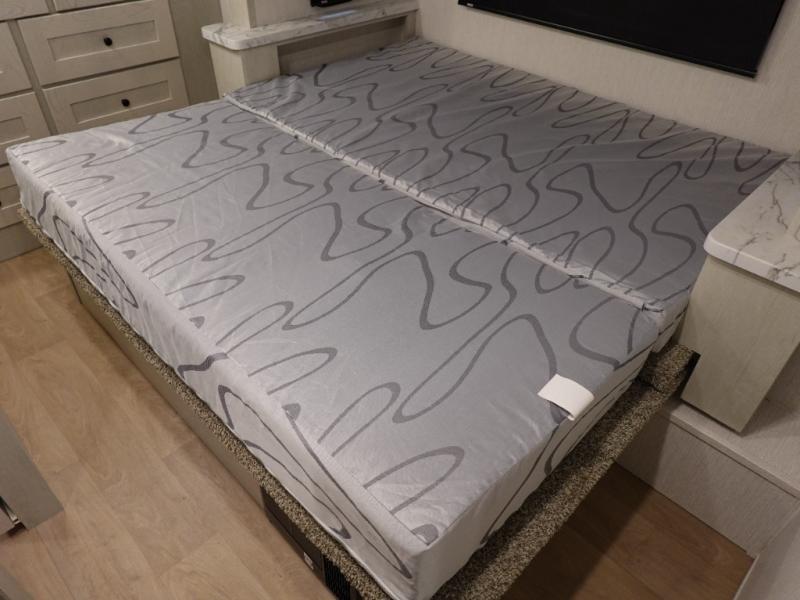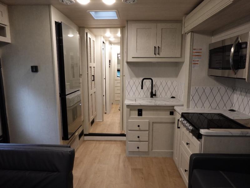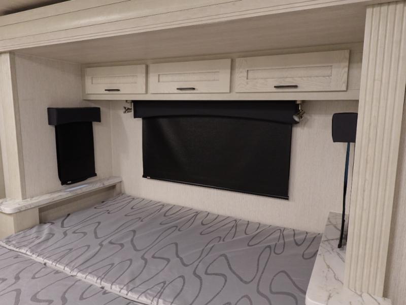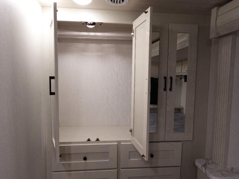 Experience your best vacations in this motorhome! You and your spouse will enjoy having your own private bedroom with a 72" x 74" king bed slide and a wardrobe to store your clothes. Next to the bedroom is the rear corner bathroom which has a 24" x 32" shower with a skylight and an area to add the optional washer and dryer combo. Prepare your best home cooked meals with the three burner cooktop and the residential 10 cu. ft. refrigerator with 1,000 watt inverter, and enjoy them at the booth dinette which can transform into an extra sleeping space. Speaking of sleeping spaces, you can also use the bunk over cab as a sleeping spot and transform the 64" hide-a-bed sofa into a sleeping space too!