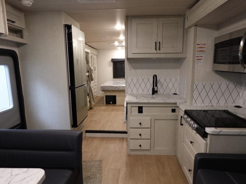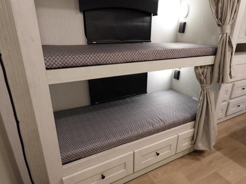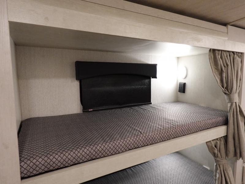 With a set of bunk beds, the grandkids can come along on all of your great adventures with this motorhome! The rear private bedroom has a queen bed for you to lay your head on at night with a wardrobe closet across from it to keep your clothes looking their best. The full bathroom is across from the bunk beds and has a shower with a skylight above and a flexible hose with the shower head, plus there is an outside shower to keep the sand outdoors. The booth dinette is not only great for enjoying your meals and playing card games, but also for transforming into an extra sleeping space. End your nights in true relaxation by sitting in one of the two recliners!