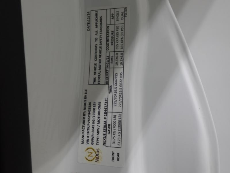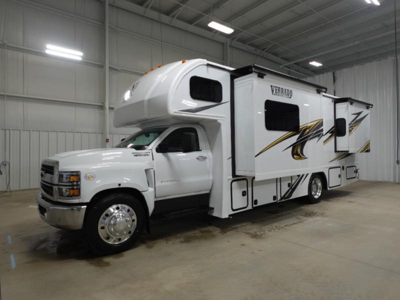 The NeXus RV Verrado Super C diesel motorhome provides exceptional space and comfort! The Chevrolet 5500 LT Silverado Series chassis is the basis for this coach with a 350 HP Duramax diesel engine and 700 ft. lb. of torque. Sturdy construction features high strength low alloy lightweight steel cage throughout, a laminated steel framed floor, and seamless gelcoat fiberglass sidewalls. Bring along everything you need with the 15,000 lb. hitch with connector and 7-way plug. You can control everything from the power driver seat with a 9" touch screen stereo with phone mirroring. Watch the scenery go by through the automotive style radius tinted frameless windows. You’re in for a great trip in this NeXus RV Verrado!