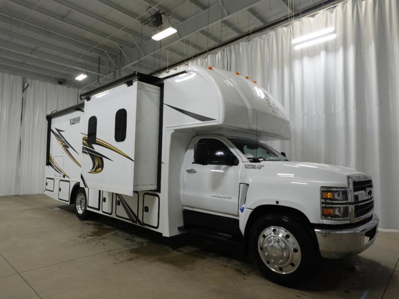 The NeXus RV Verrado Super C diesel motorhome provides exceptional space and comfort! The Chevrolet 5500 LT Silverado Series chassis is the basis for this coach with a 350 HP Duramax diesel engine and 700 ft. lb. of torque. Sturdy construction features high strength low alloy lightweight steel cage throughout, a laminated steel framed floor, and seamless gelcoat fiberglass sidewalls. Bring along everything you need with the 15,000 lb. hitch with connector and 7-way plug. You can control everything from the power driver seat with a 9" touch screen stereo with phone mirroring. Watch the scenery go by through the automotive style radius tinted frameless windows. You’re in for a great trip in this NeXus RV Verrado!