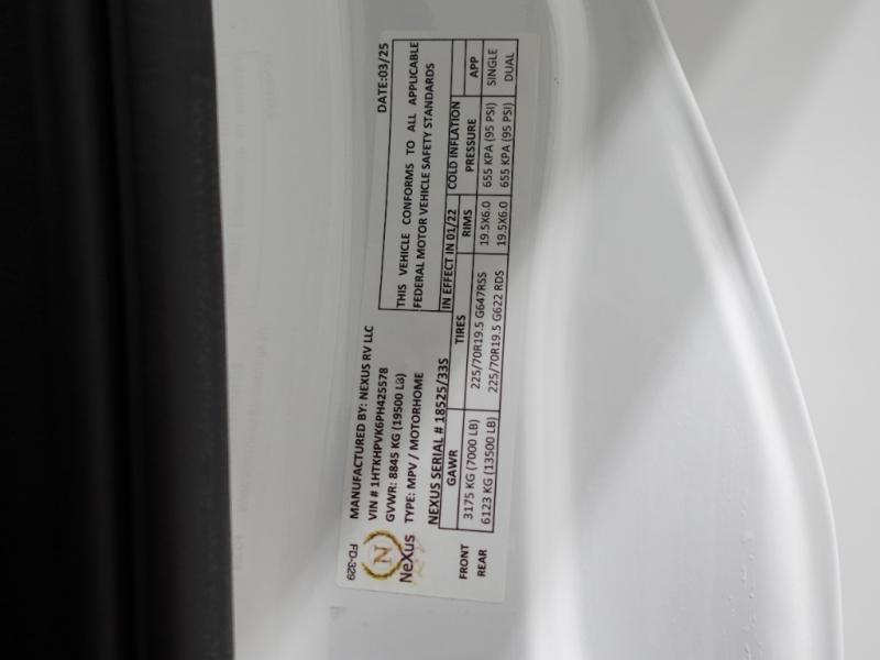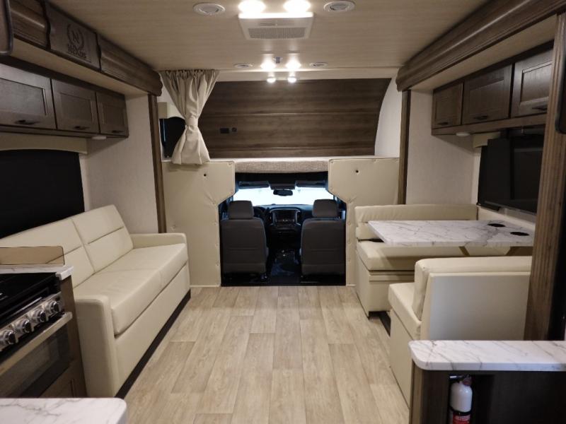 The NeXus RV Verrado Super C diesel motorhome provides exceptional space and comfort! The Chevrolet 5500 LT Silverado Series chassis is the basis for this coach with a 350 HP Duramax diesel engine and 700 ft. lb. of torque. Sturdy construction features high strength low alloy lightweight steel cage throughout, a laminated steel framed floor, and seamless gelcoat fiberglass sidewalls. Bring along everything you need with the 15,000 lb. hitch with connector and 7-way plug. You can control everything from the power driver seat with a 9" touch screen stereo with phone mirroring. Watch the scenery go by through the automotive style radius tinted frameless windows. You’re in for a great trip in this NeXus RV Verrado!