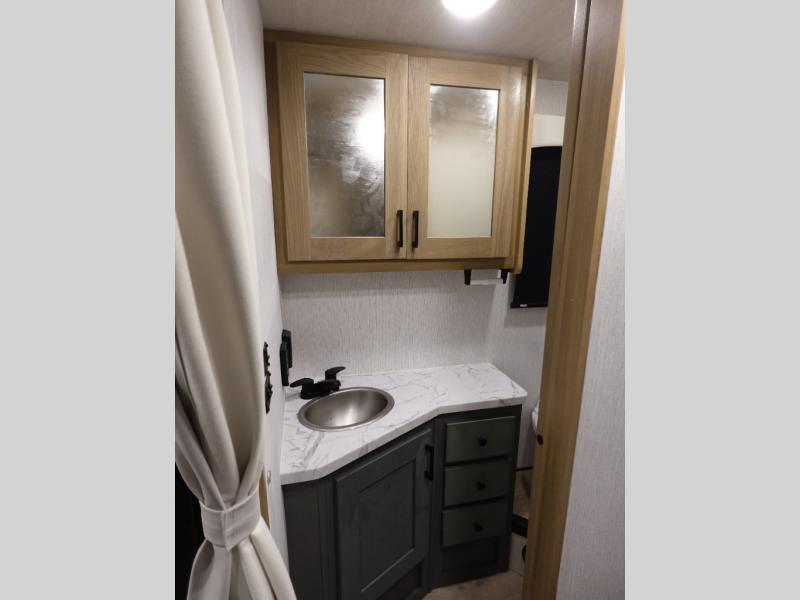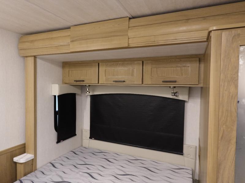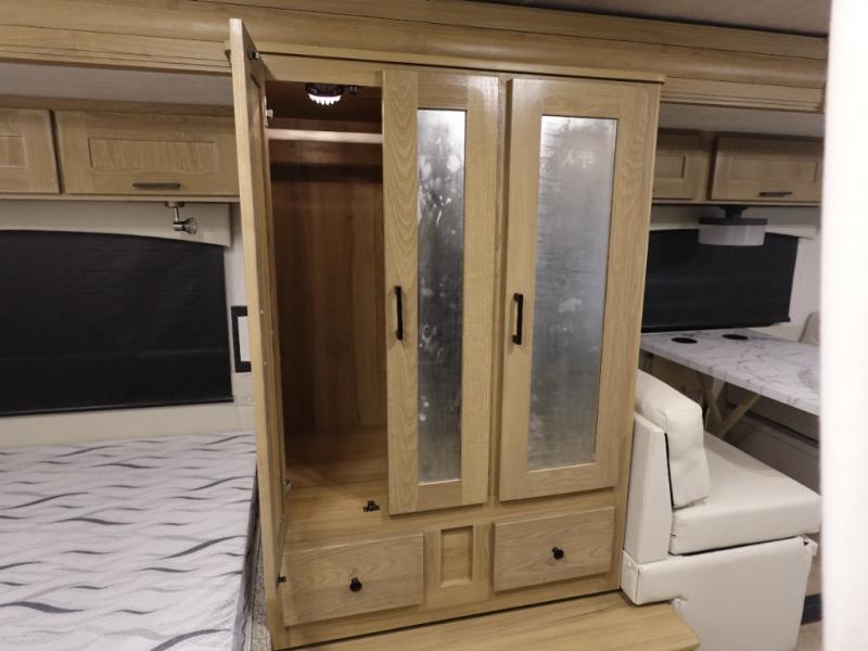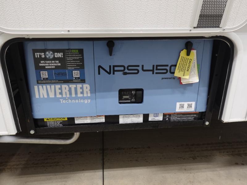 Travel in comfort with your spouse or family to see new places and visit friends in another state. As comfortable as driving will be, the interior offers plenty of space to dine, relax and unwind. The full wall slide makes each area spacious from the front to the back where you will find a hinged RV queen bed and a full bathroom which includes a shower with a flexible hose shower head, a shower skylight and a vinyl door. You will find storage in the wardrobe and overhead cabinets as well as along the exterior. The cab over entertainment center with 40" LED TV will come in handy on those rainy days. A few other features you are sure to appreciate include an NPS 4500 generator when you decide to stop off-grid, the LP quick disconnect, and the 7,500 lb. hitch if you would like to tow your toys and such.