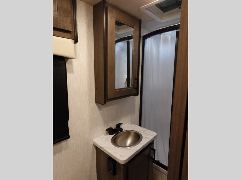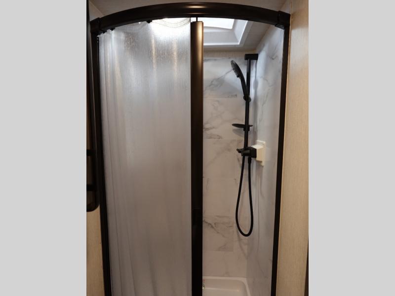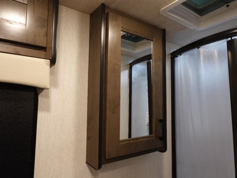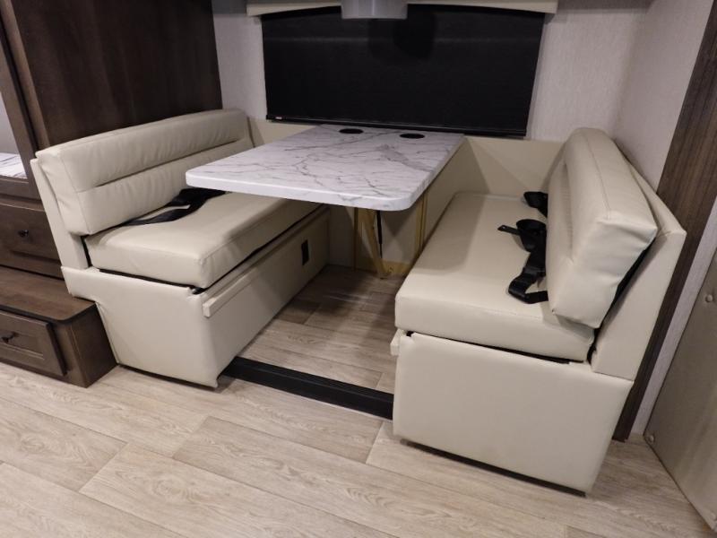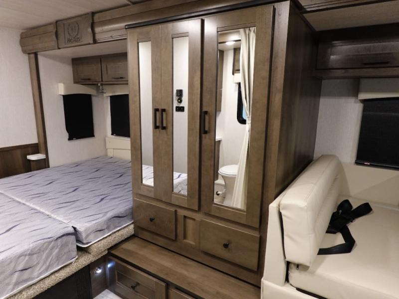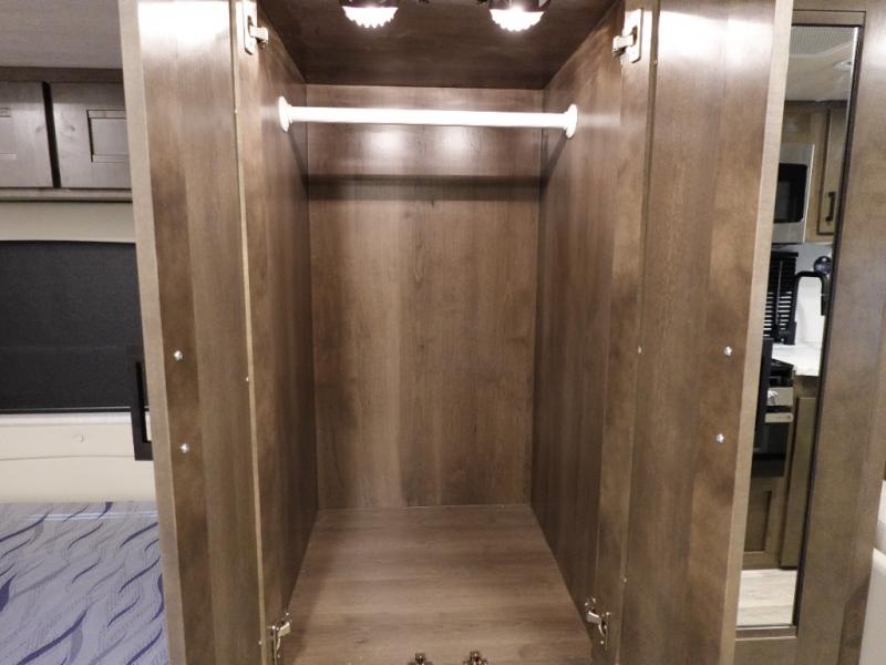 Travel in comfort with your spouse or family to see new places and visit friends in another state. As comfortable as driving will be, the interior offers plenty of space to dine, relax and unwind. The full wall slide makes each area spacious from the front to the back where you will find a hinged RV queen bed and a full bathroom which includes a shower with a flexible hose shower head, a shower skylight and a vinyl door. You will find storage in the wardrobe and overhead cabinets as well as along the exterior. The cab over entertainment center with 40" LED TV will come in handy on those rainy days. A few other features you are sure to appreciate include an NPS 4500 generator when you decide to stop off-grid, the LP quick disconnect, and the 7,500 lb. hitch if you would like to tow your toys and such.