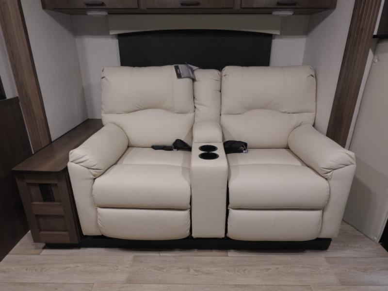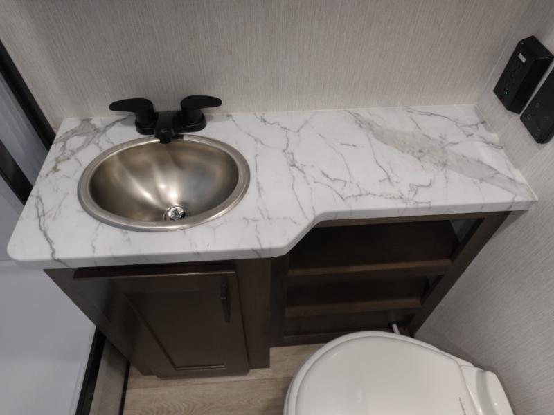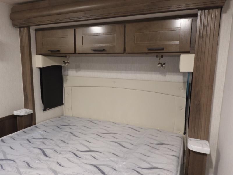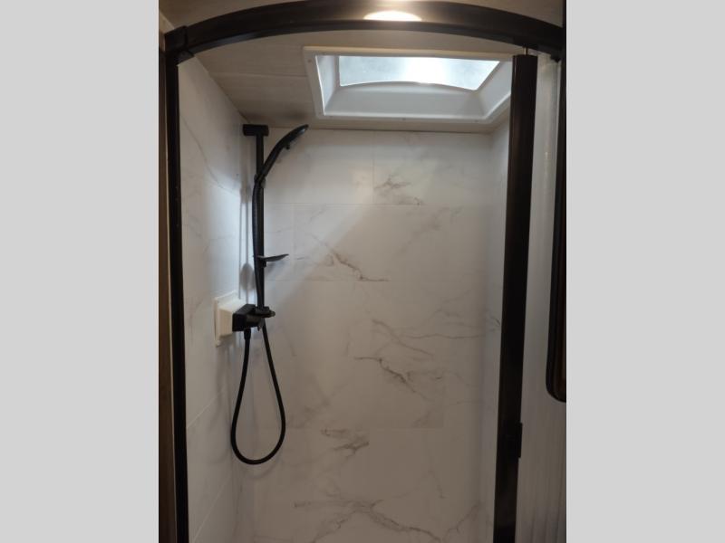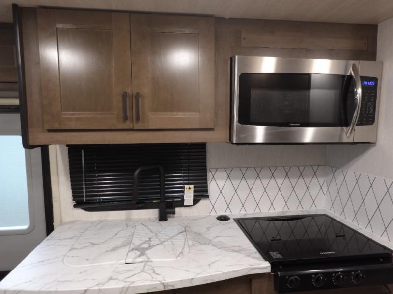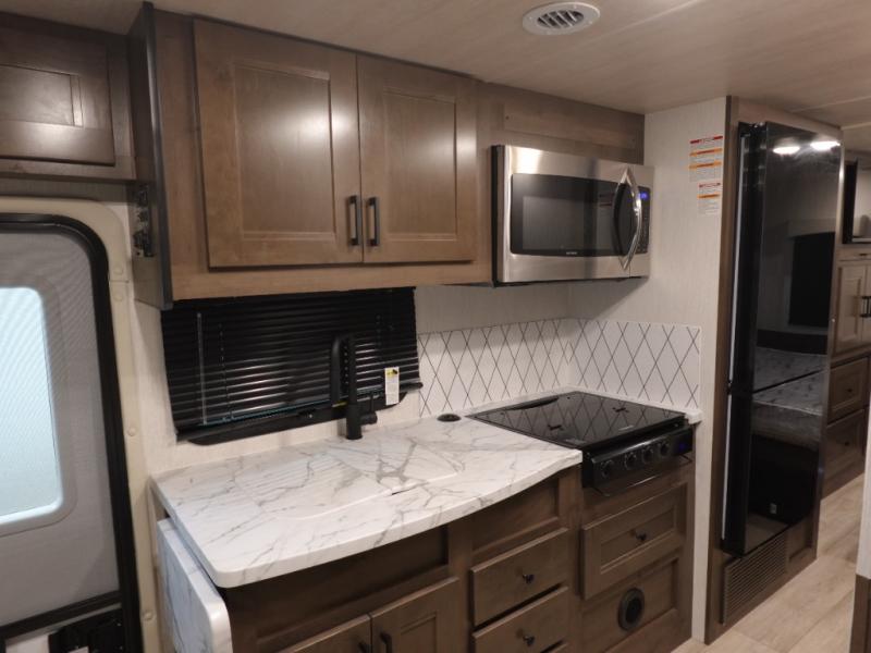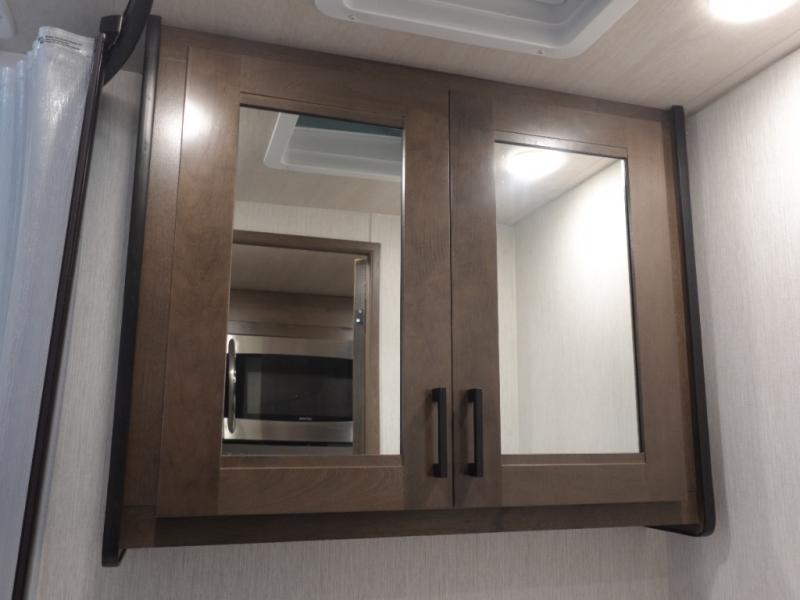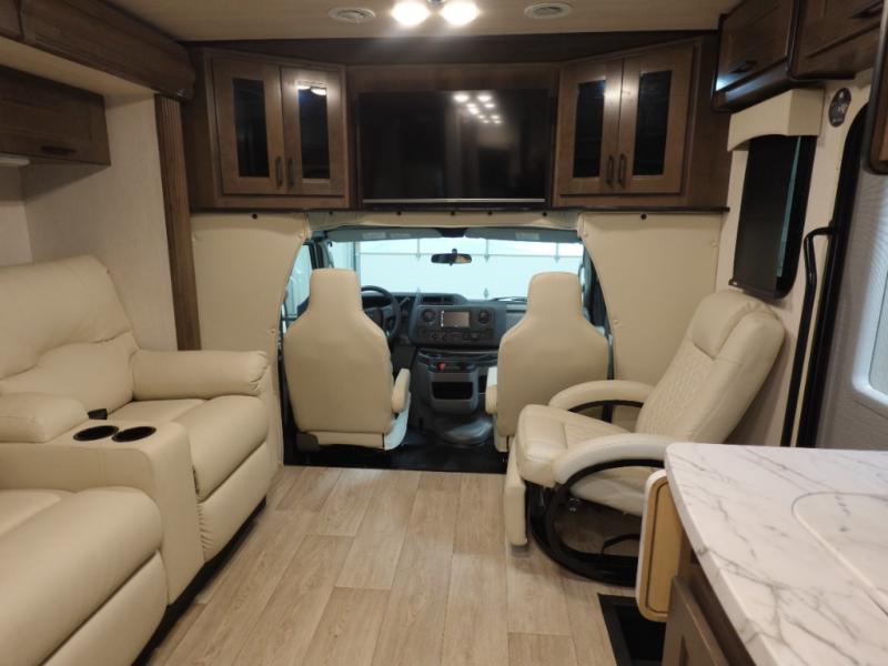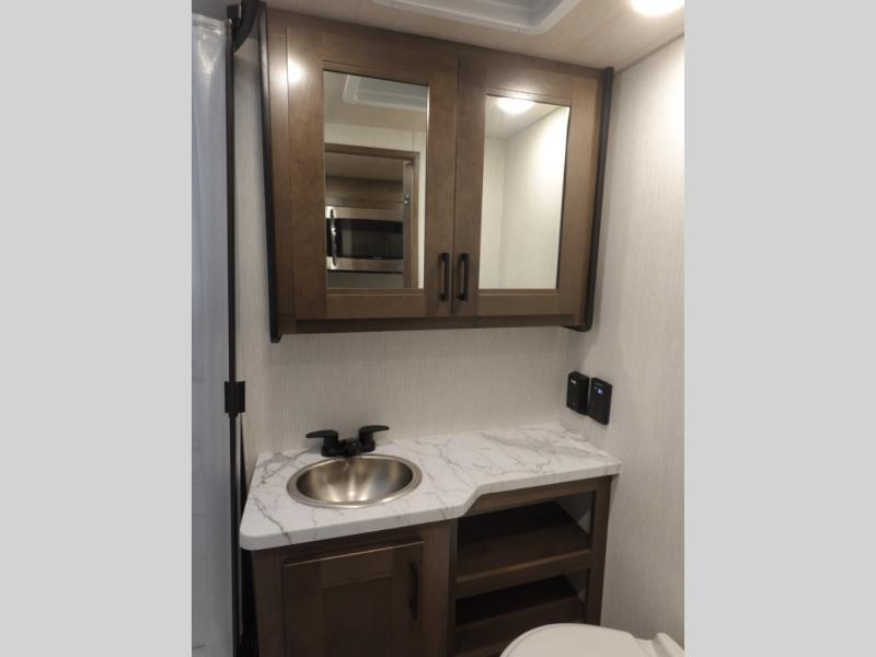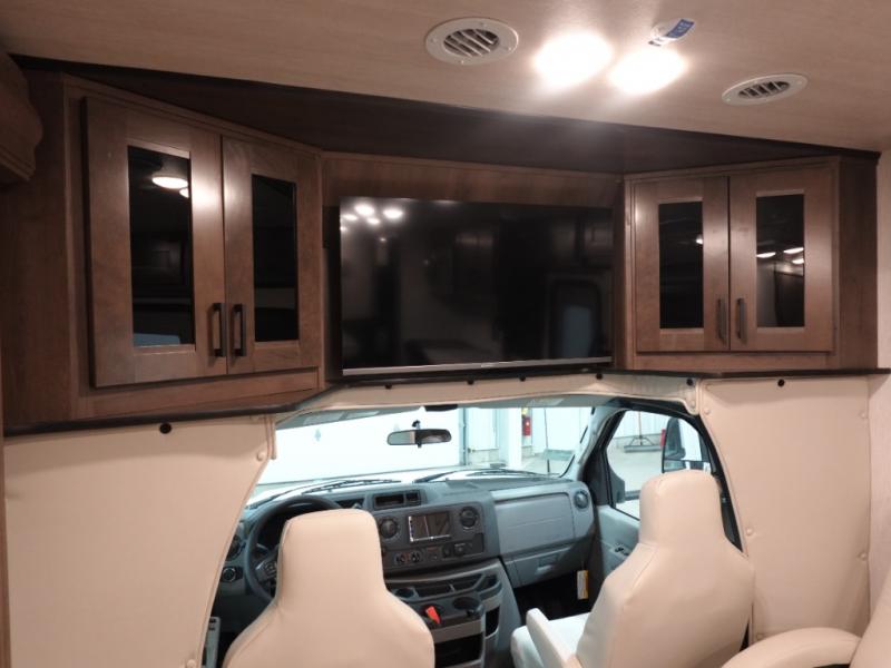 Whether you travel with your family on long vacations or your spouse for months at a time, this spacious Class B+ offers two slide outs giving you lots of floor space to enjoy at any destination. The cook will love having a 10 cu. ft. refrigerator to carry lots of goodies especially when the family joins you, and there is storage found throughout in overhead cabinets for your dishes and such. The full bathroom is in between the main area and the rear bedroom and offers a shower with a flexible hose shower head, a skylight for more headroom in the shower, and a vinyl door, plus everything else needed to stay refreshed. The rear window in your bedroom will provide great views while you lay in your RV queen bed slide out! You will also find an NPS 4500 generator, an LP quick disconnect, and a 7,500 lb. hitch if you decide to tow something.