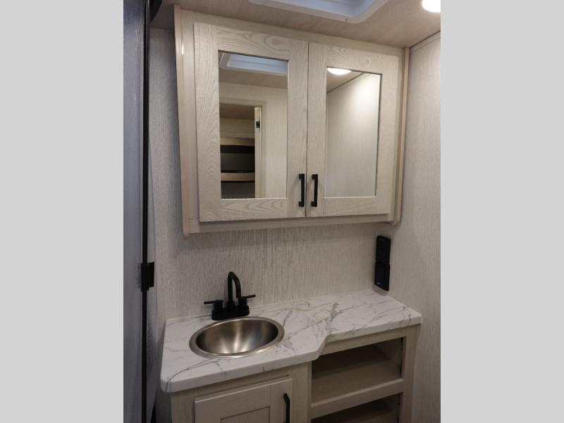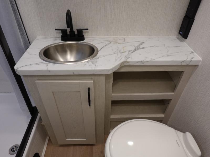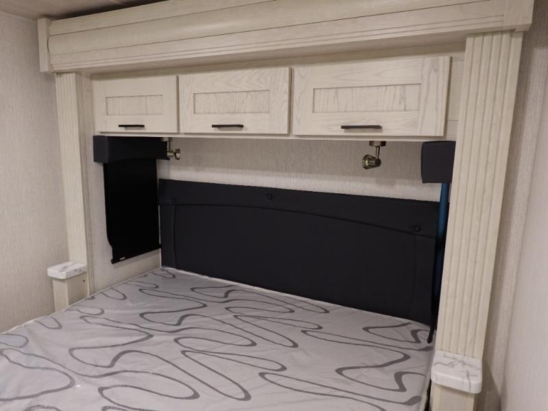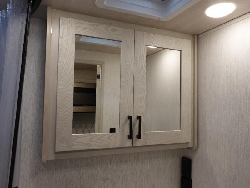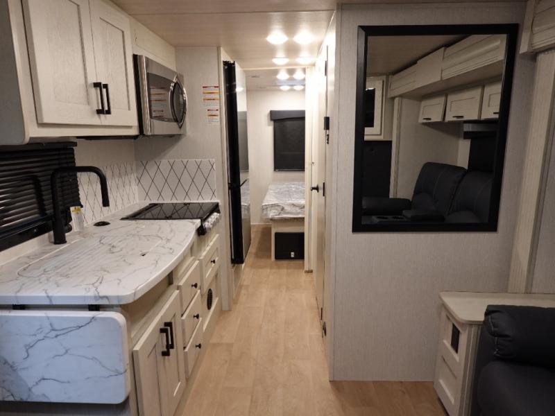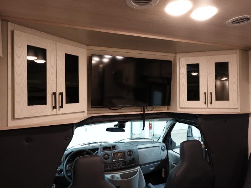 Whether you travel with your family on long vacations or your spouse for months at a time, this spacious Class B+ offers two slide outs giving you lots of floor space to enjoy at any destination. The cook will love having a 10 cu. ft. refrigerator to carry lots of goodies especially when the family joins you, and there is storage found throughout in overhead cabinets for your dishes and such. The full bathroom is in between the main area and the rear bedroom and offers a shower with a flexible hose shower head, a skylight for more headroom in the shower, and a vinyl door, plus everything else needed to stay refreshed. The rear window in your bedroom will provide great views while you lay in your RV queen bed slide out! You will also find an NPS 4500 generator, an LP quick disconnect, and a 7,500 lb. hitch if you decide to tow something.