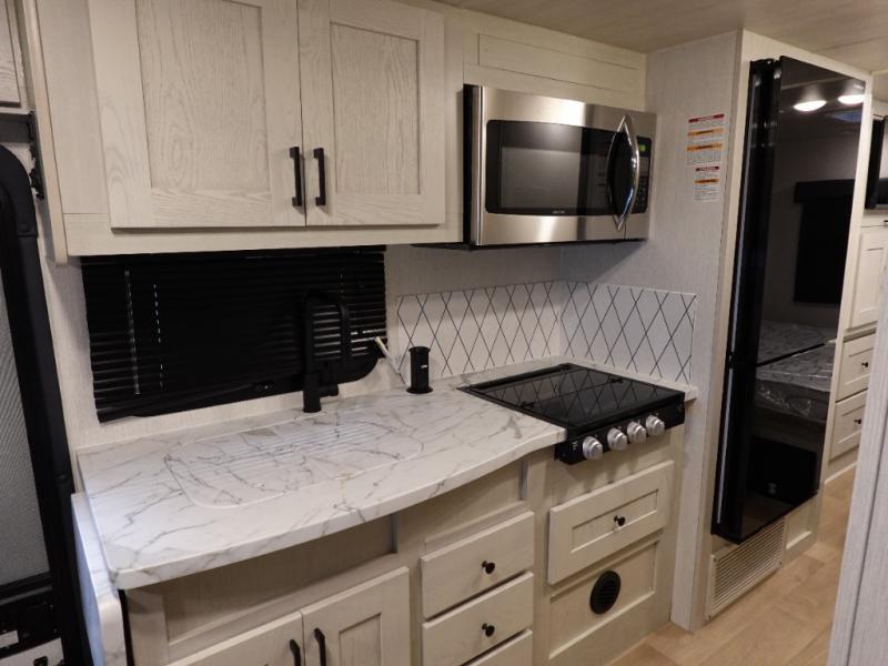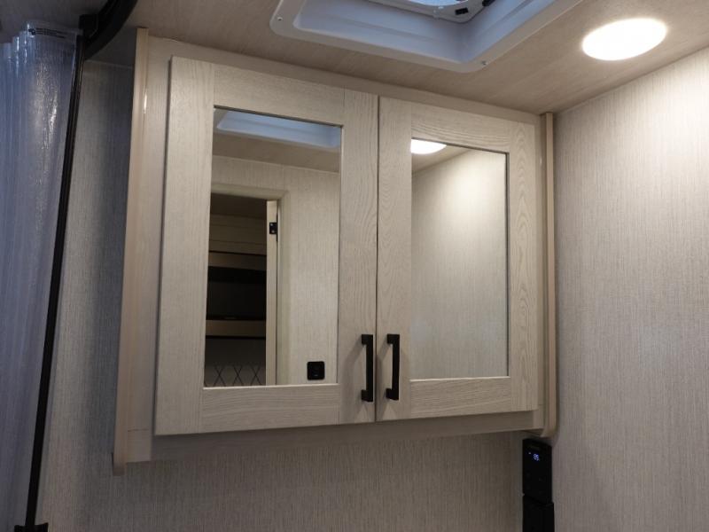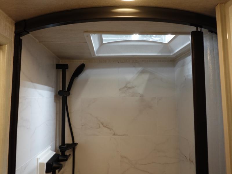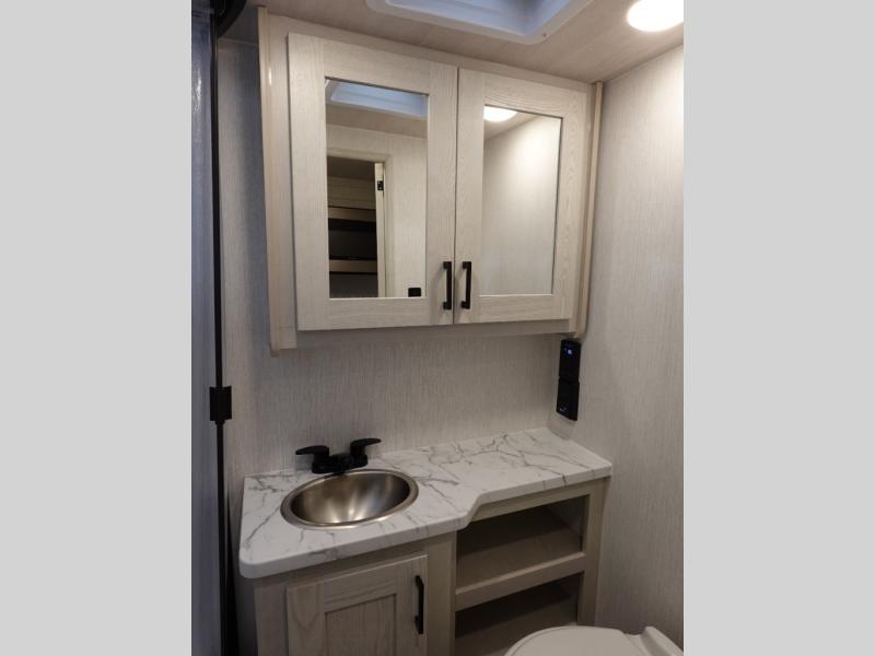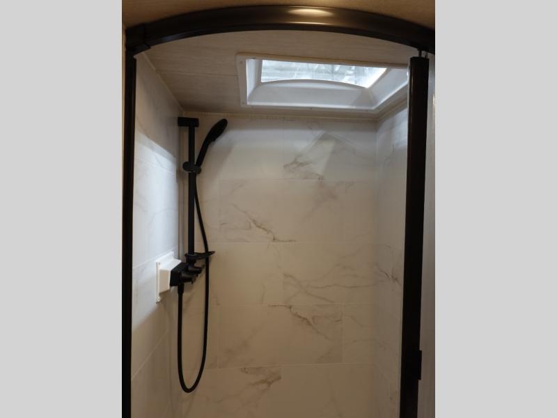 Whether you travel with your family on long vacations or your spouse for months at a time, this spacious Class B+ offers two slide outs giving you lots of floor space to enjoy at any destination. The cook will love having a 10 cu. ft. refrigerator to carry lots of goodies especially when the family joins you, and there is storage found throughout in overhead cabinets for your dishes and such. The full bathroom is in between the main area and the rear bedroom and offers a shower with a flexible hose shower head, a skylight for more headroom in the shower, and a vinyl door, plus everything else needed to stay refreshed. The rear window in your bedroom will provide great views while you lay in your RV queen bed slide out! You will also find an NPS 4500 generator, an LP quick disconnect, and a 7,500 lb. hitch if you decide to tow something.