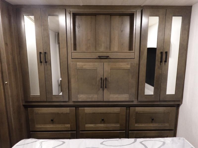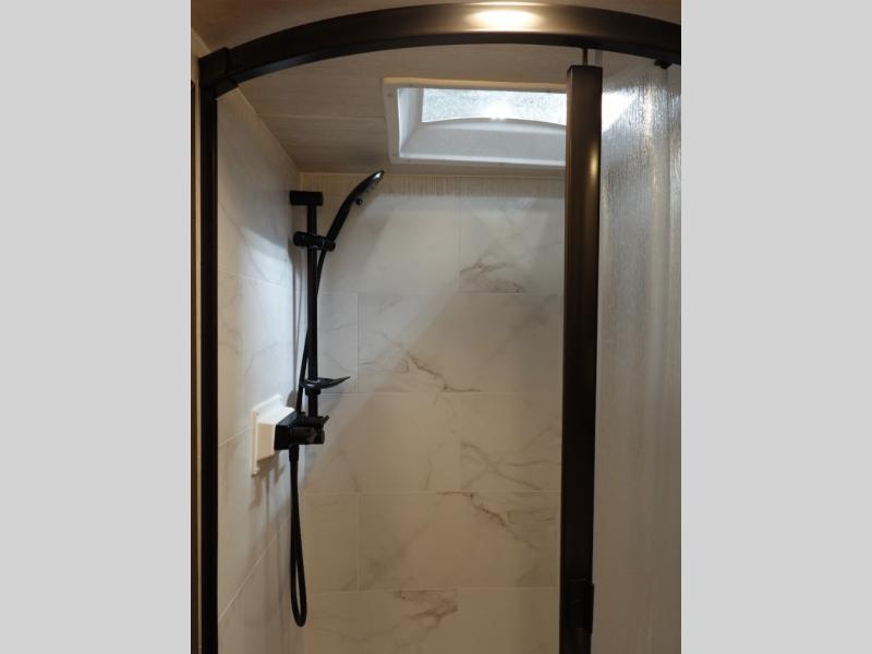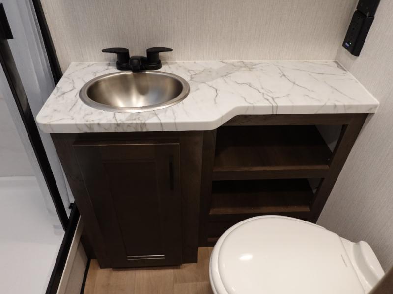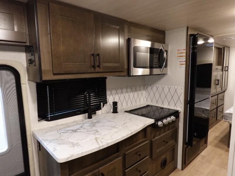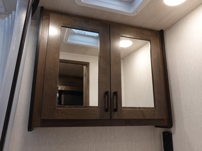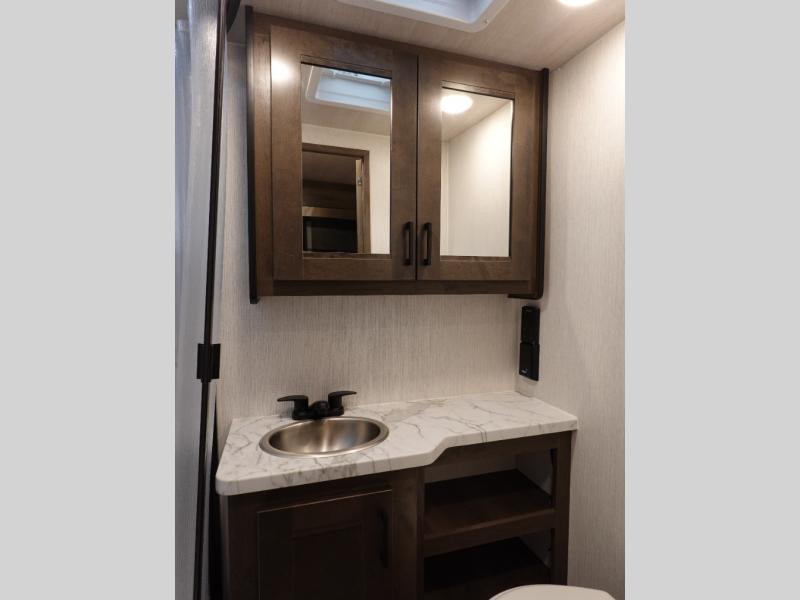 Whether you travel with your family on long vacations or your spouse for months at a time, this spacious Class B+ offers two slide outs giving you lots of floor space to enjoy at any destination. The cook will love having a 10 cu. ft. refrigerator to carry lots of goodies especially when the family joins you, and there is storage found throughout in overhead cabinets for your dishes and such. The full bathroom is in between the main area and the rear bedroom and offers a shower with a flexible hose shower head, a skylight for more headroom in the shower, and a vinyl door, plus everything else needed to stay refreshed. The rear window in your bedroom will provide great views while you lay in your RV queen bed slide out! You will also find an NPS 4500 generator, an LP quick disconnect, and a 7,500 lb. hitch if you decide to tow something.