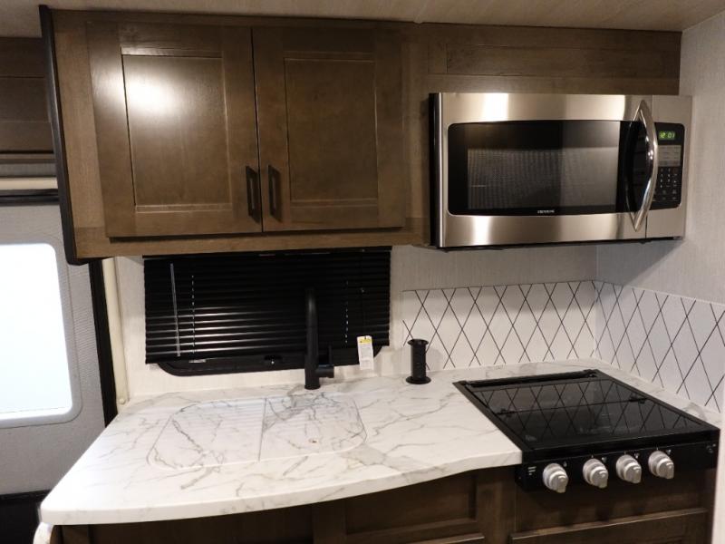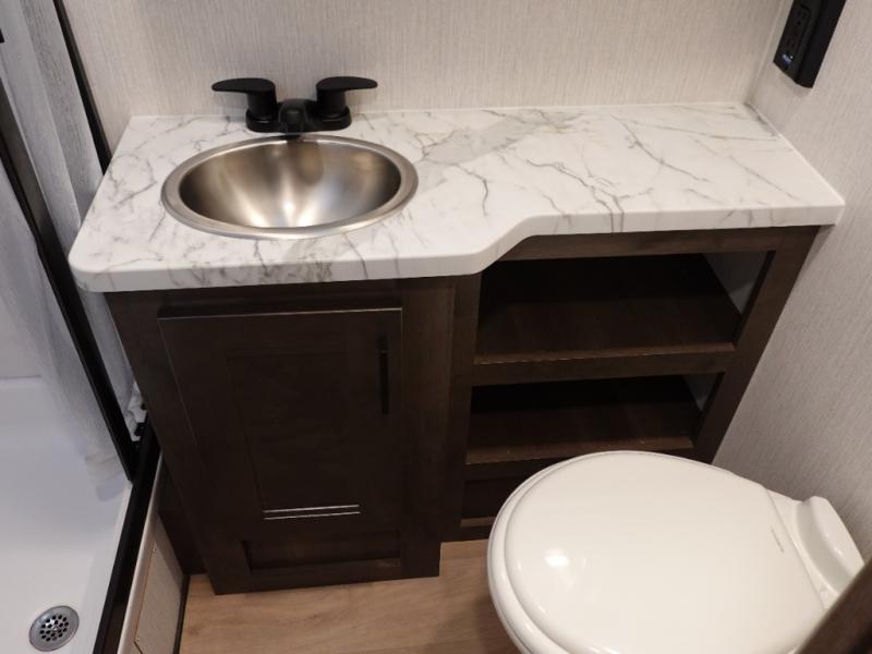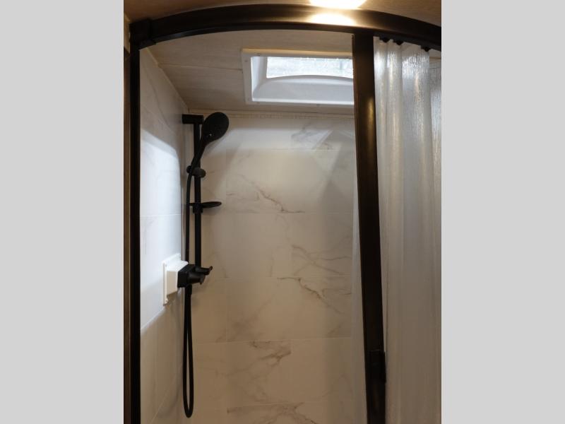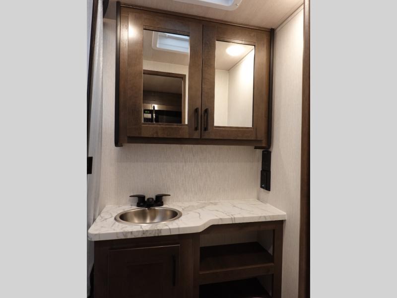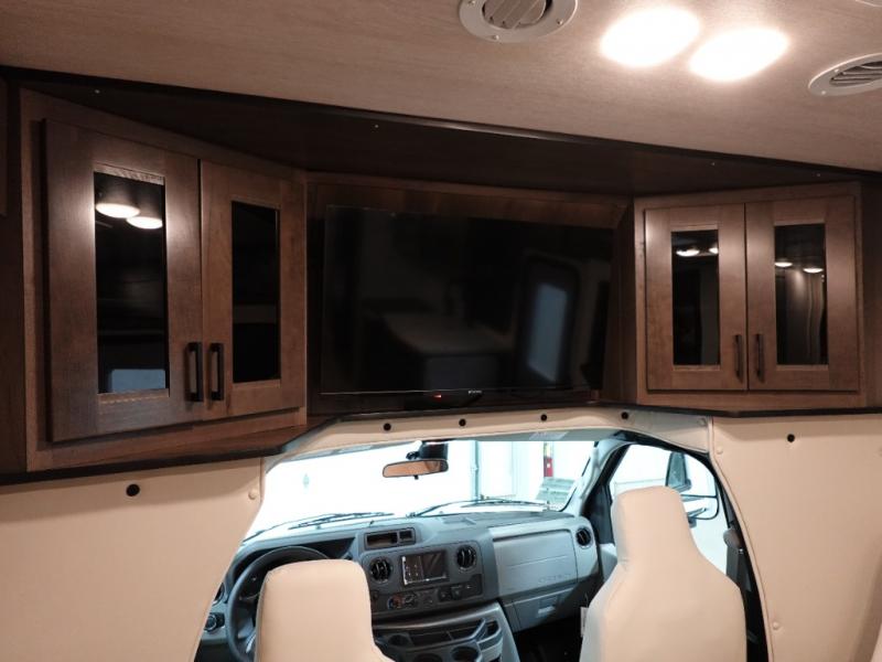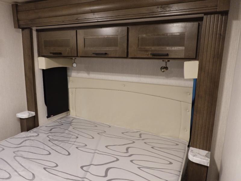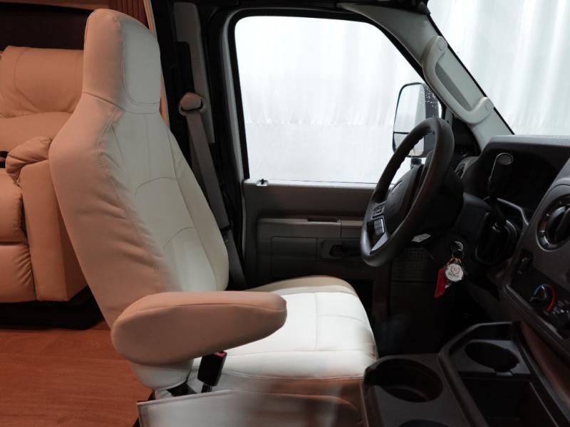Whether you travel with your family on long vacations or your spouse for months at a time, this spacious Class B+ offers two slide outs giving you lots of floor space to enjoy at any destination. The cook will love having a 10 cu. ft. refrigerator to carry lots of goodies especially when the family joins you, and there is storage found throughout in overhead cabinets for your dishes and such. The full bathroom is in between the main area and the rear bedroom and offers a shower with a flexible hose shower head, a skylight for more headroom in the shower, and a vinyl door, plus everything else needed to stay refreshed. The rear window in your bedroom will provide great views while you lay in your RV queen bed slide out! You will also find an NPS 4500 generator, an LP quick disconnect, and a 7,500 lb. hitch if you decide to tow something.