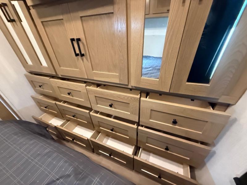 If you're looking for quality, safety, and luxury in a motorhome, look no further than one of these NeXus RV Wraith Super C diesel motorhomes! A Freightliner S2 RV chassis holds them together and a 6.7L 340 HP Cummins ISB diesel engine coupled with a 6-speed Allison transmission powers them. They have a best in class "all steel-composite" that is up to 72% stronger for safer rides and the steel in the superstructure helps minimize potential water damage while also maximizing the thermal and sound insulation. Experience at-home touches like a deluxe innerspring mattress, upgraded flooring, solid surface kitchen countertops, and night roller shades for privacy. You will be able to enjoy endless hot showers with an on-demand hot water heater, and the 6.0 Onan diesel generator will keep you powered up for every adventure. Outside, you'll love the look of the deluxe 4-color full body paint, and the frameless windows with automotive seal will help keep the elements out.