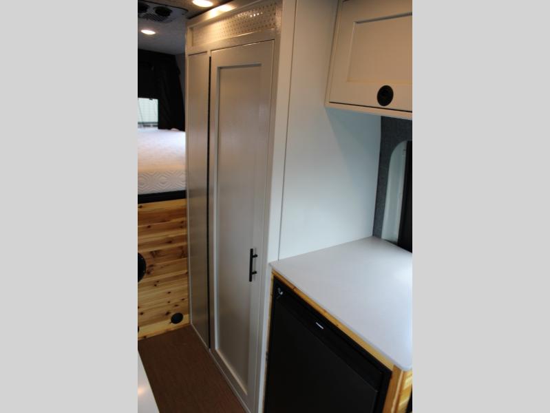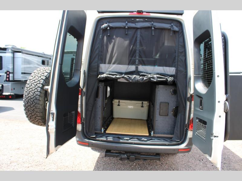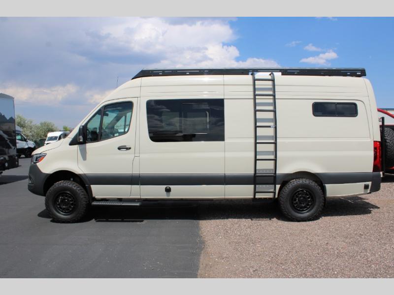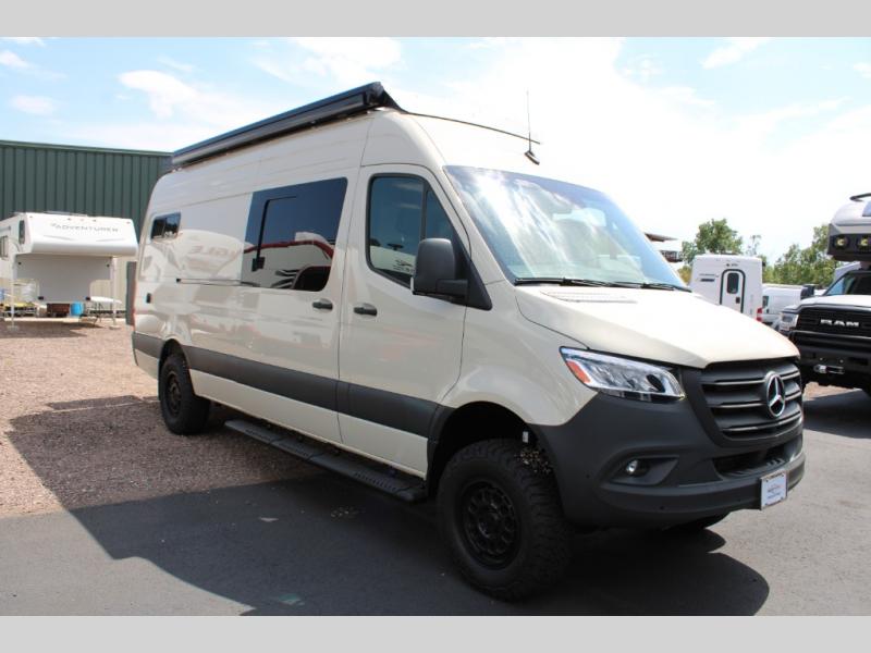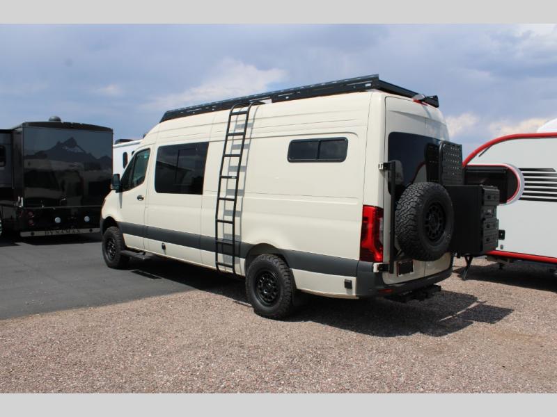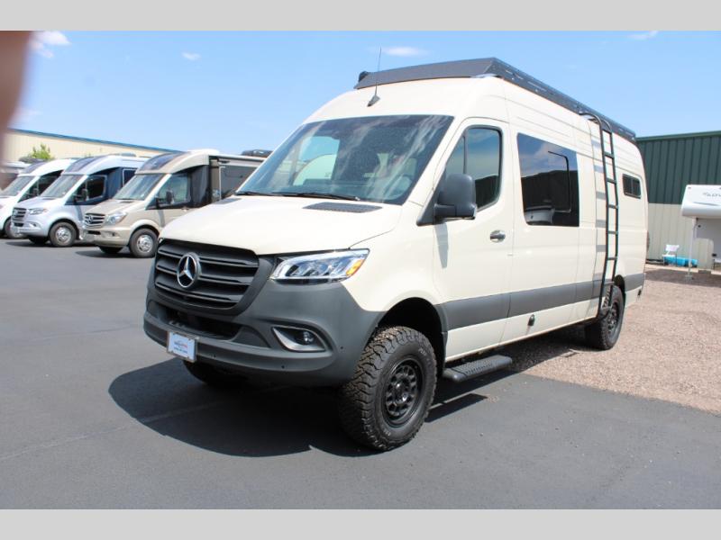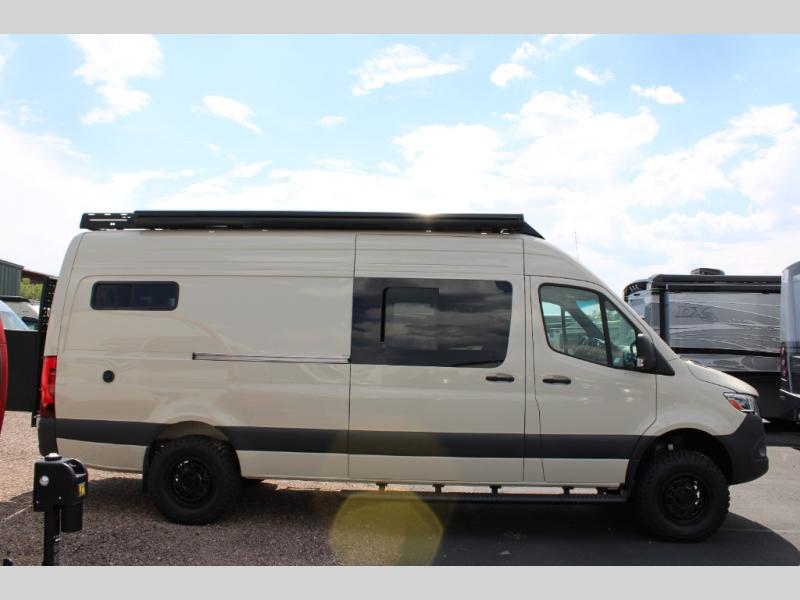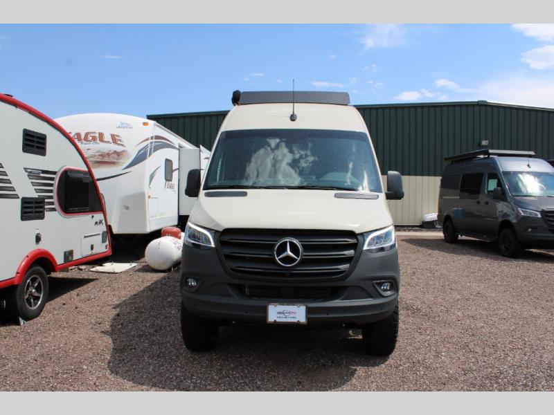 The Native Class B diesel coach by Nomad RVs is ready for adventure when you are. You can trust the Mercedes Sprinter chassis with a 170 wheelbase, plus there is all-wheel drive so you can maneuver different terrains. The 810Ah, 10.4 kWh Battle Born Batteries, secondary alternator, shore power inlet, and 360 watts of solar will keep you powered up. There is also a Starlink system outside, along with a patio awning, Van Essential rear and sliding door bug screens, a Flatline Van Co roof rack, and many more conveniences. Inside, you'll love the LED puck lighting in the ceiling, over the bed, and in the shower, plus there is ample storage throughout for your belongings, camp gear, food, and more!