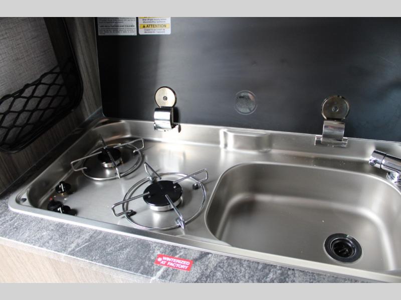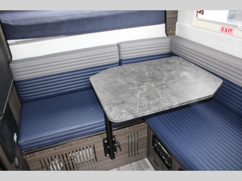 Head for the hills in this half-ton truck camper for three! After driving to your destination all day, you can make lunch on the two burner cooktop once you set up camp, and there is a sink with a folding faucet to clean up. The dinette will be perfect for meals times, and you can convert this to a bed if you have a guest. A Thetford cassette toilet will make nighttime restroom breaks easier than ever, and you'll sleep soundly on the front bed.
